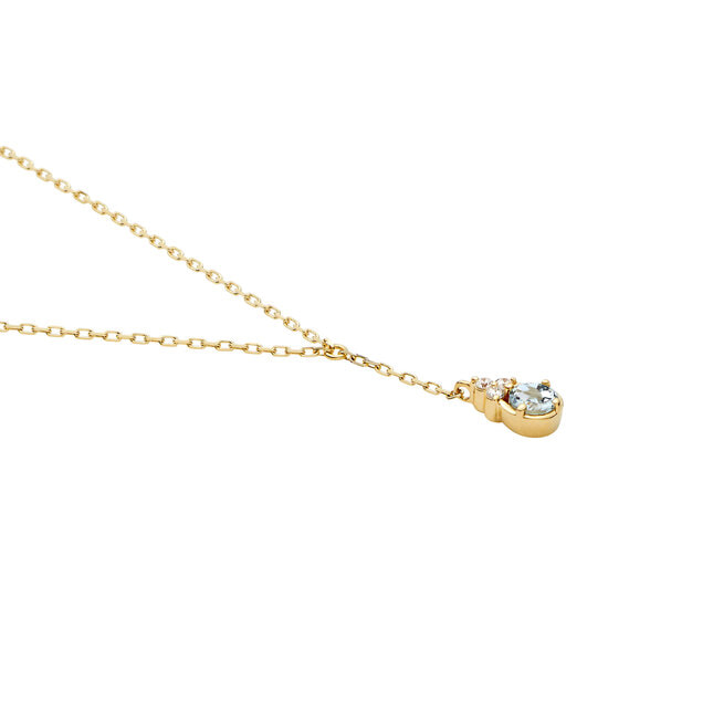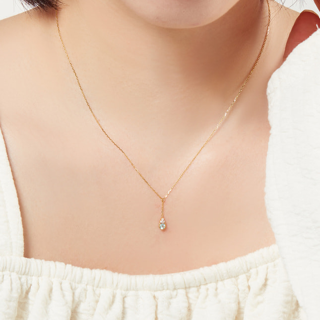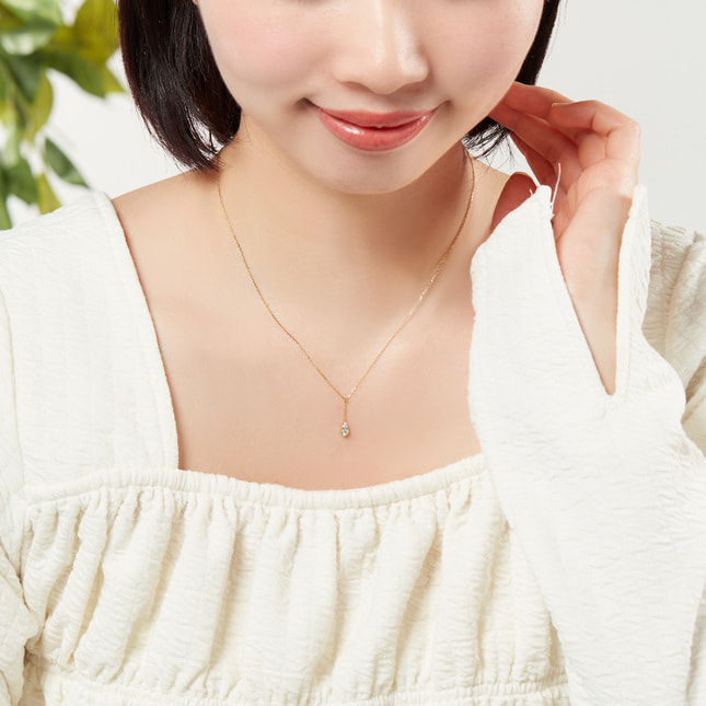 華奢デザインながらもアクアマリンの存在感のある輝きで、顔周りをぱっと明るく華やかにもしてくれます。