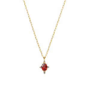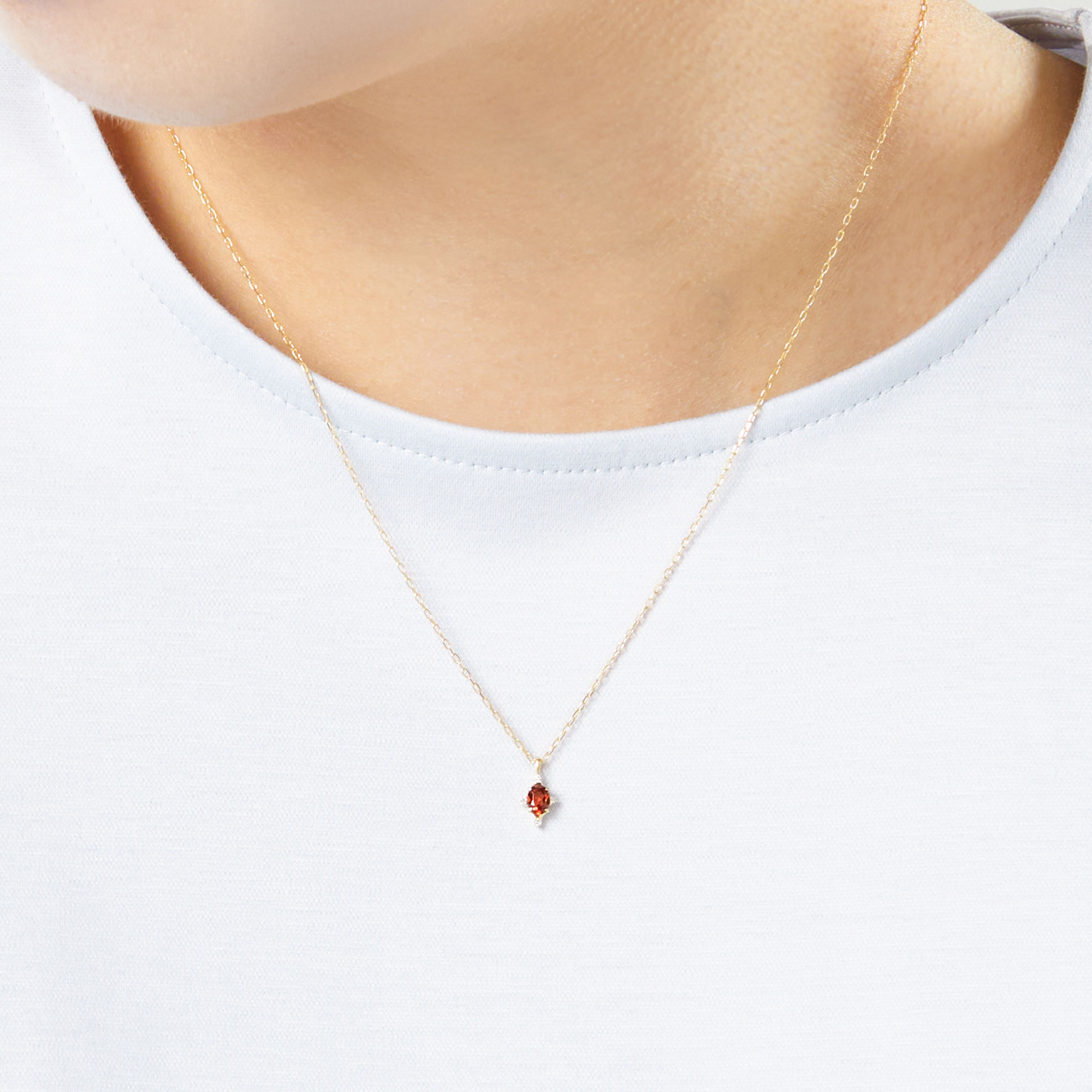 オーバルカットのガーネットに、ダイヤモンドのきらめきが星を思わせるネックレス。