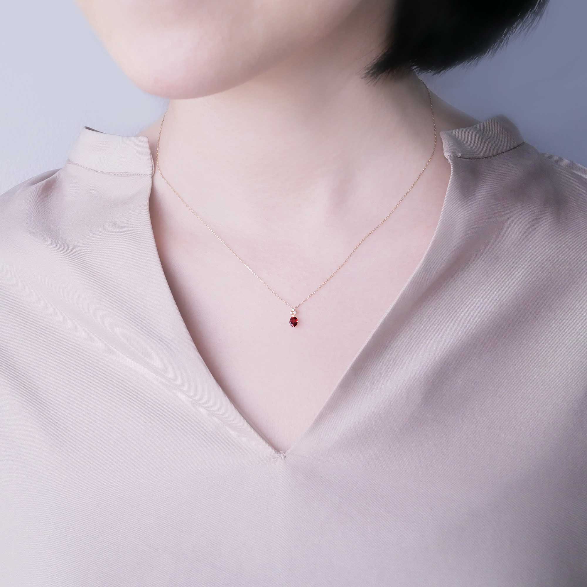 オーバルカットのガーネットが愛らしい印象のネックレス。
