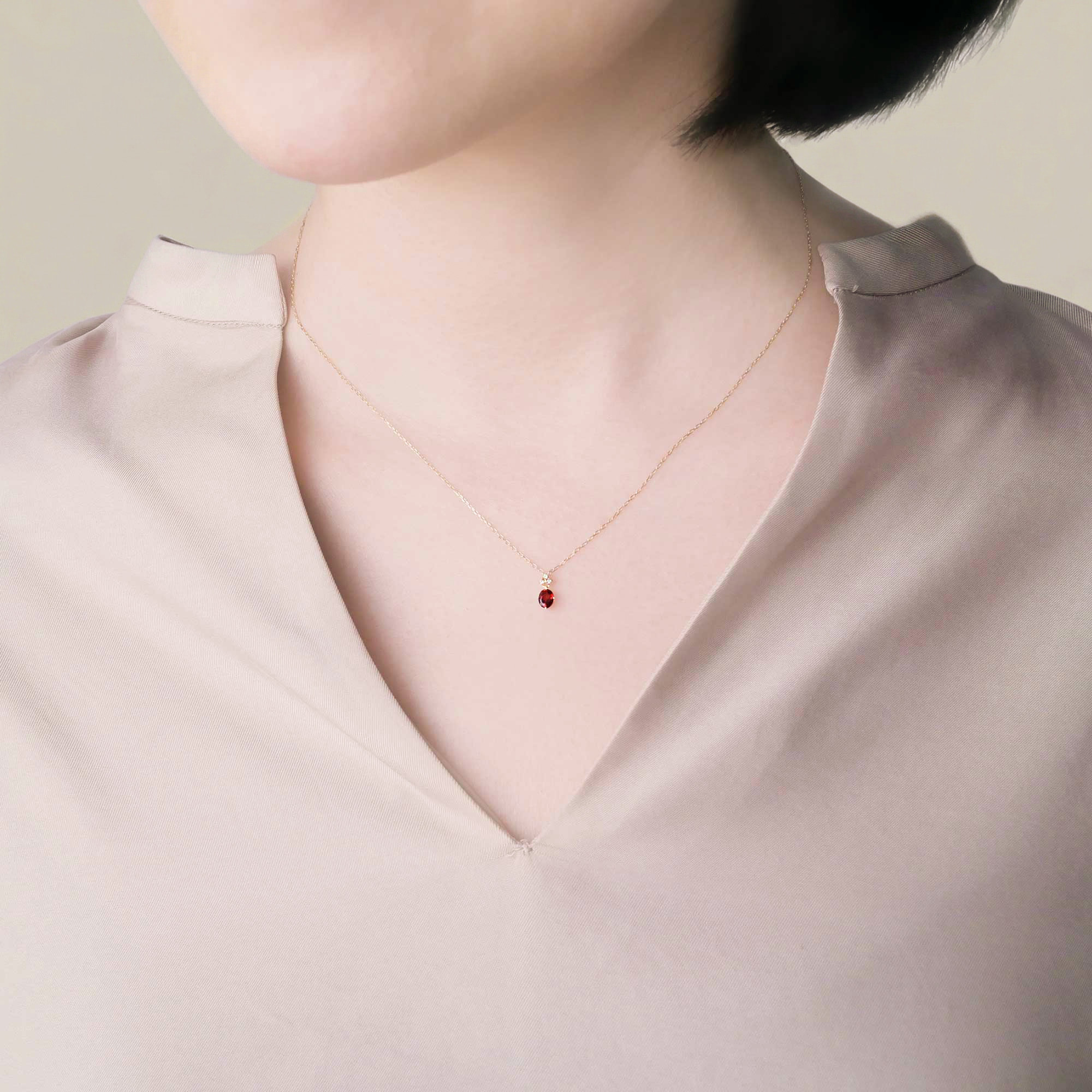 オーバルカットのガーネットが愛らしい印象のネックレス。