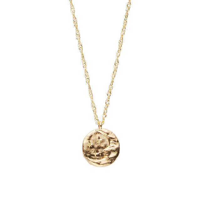 シンプルに一つで着けても、他のネックレスとレイヤードしてもおしゃれに決まるコインモチーフネックレス。