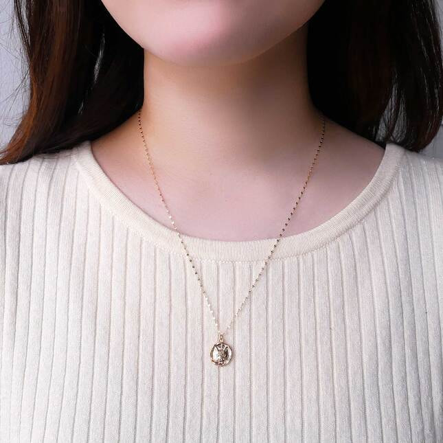 シンプルに一つで着けても、他のネックレスとレイヤードしてもおしゃれに決まるコインモチーフネックレス。