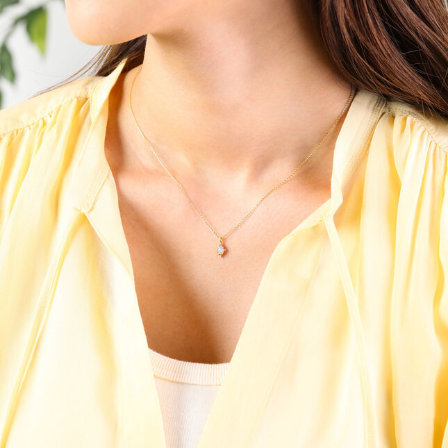 揺れ感を楽しめるネックレスは顔まわりをぱっと明るく見せてくれそう。