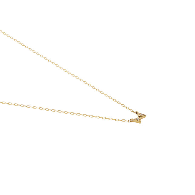 ダイヤモンドは小さな爪でセッティングされ、胸元で繊細にきらめきます。
