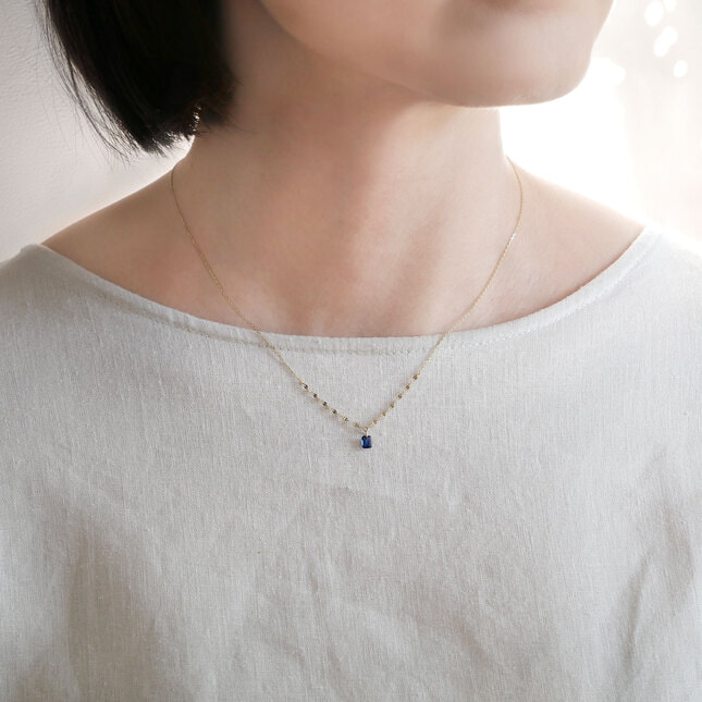 落ち着いた色味のサファイアのネックレスはコーディネートに加えるだけで、アクセントになってくれそう。