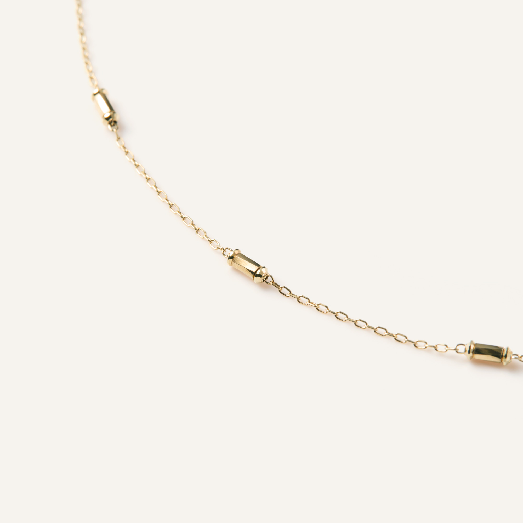 イエローゴールドの華やかな輝きを楽しめるチェーンは、さらりと身につけるだけでデコルテに上品な印象をプラスします。