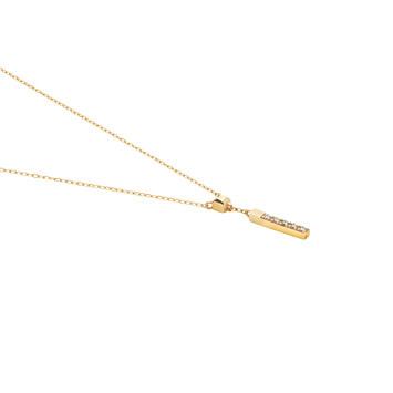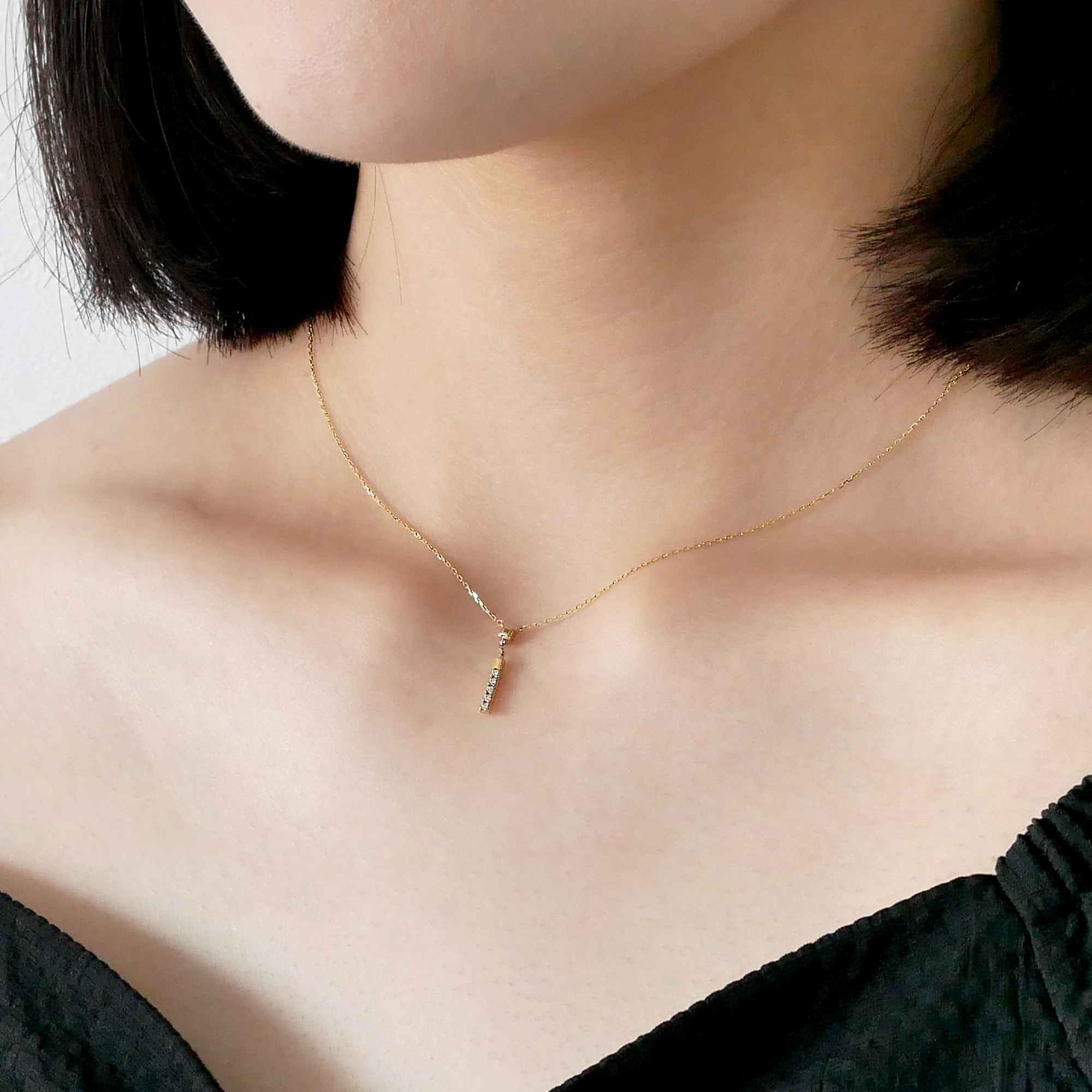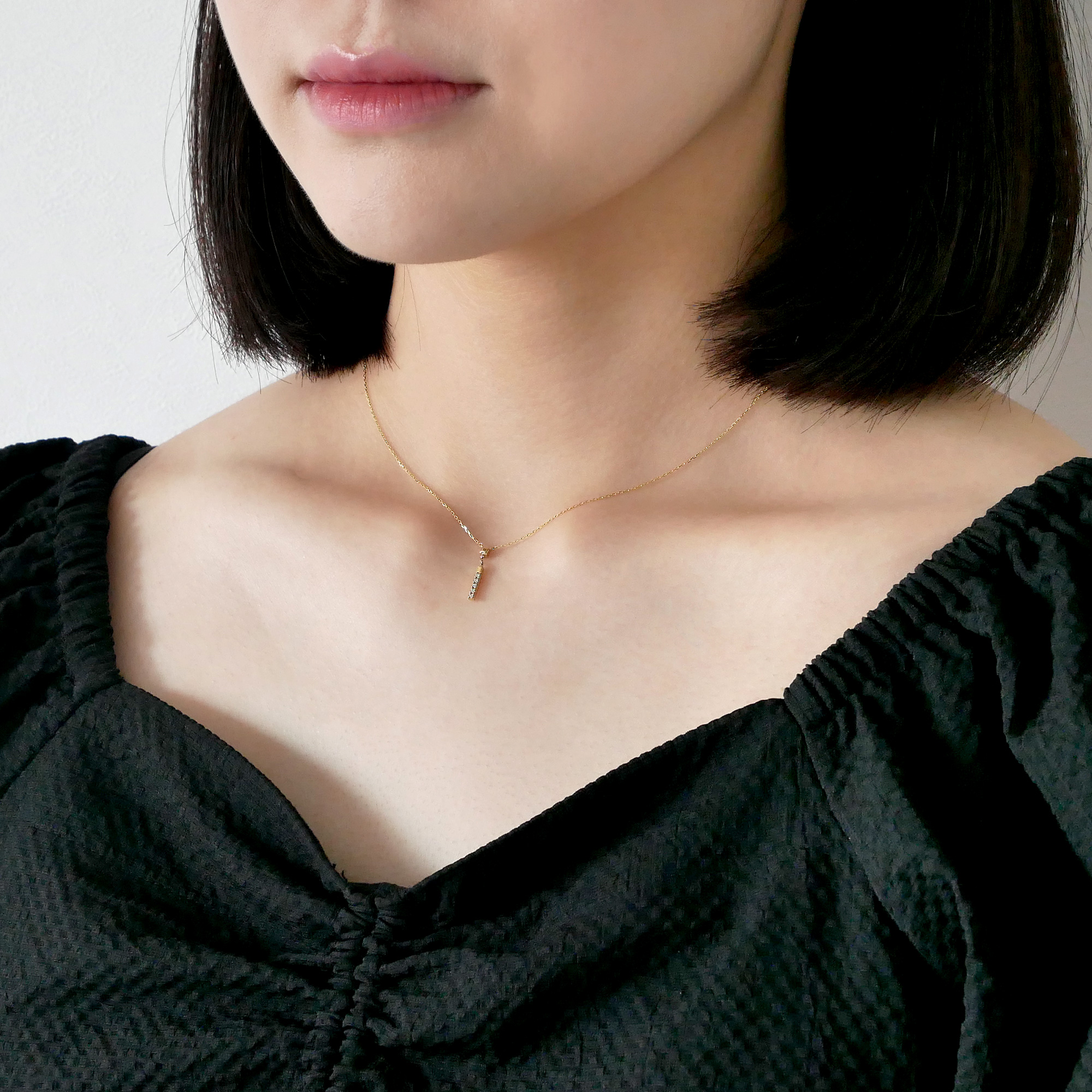 ダイヤモンドのきらめきとゴールドの華やかさを同時に楽しめるバーネックレス。