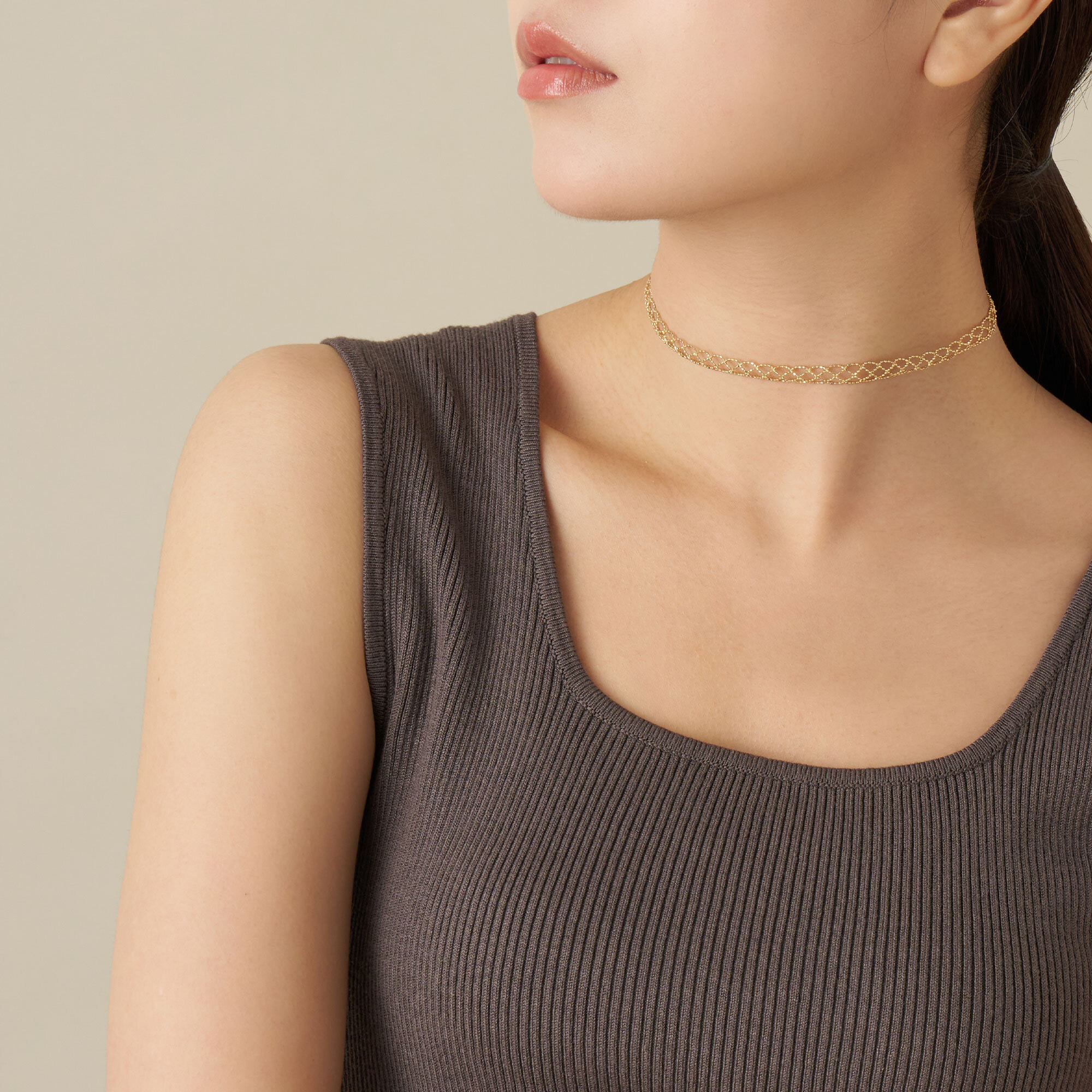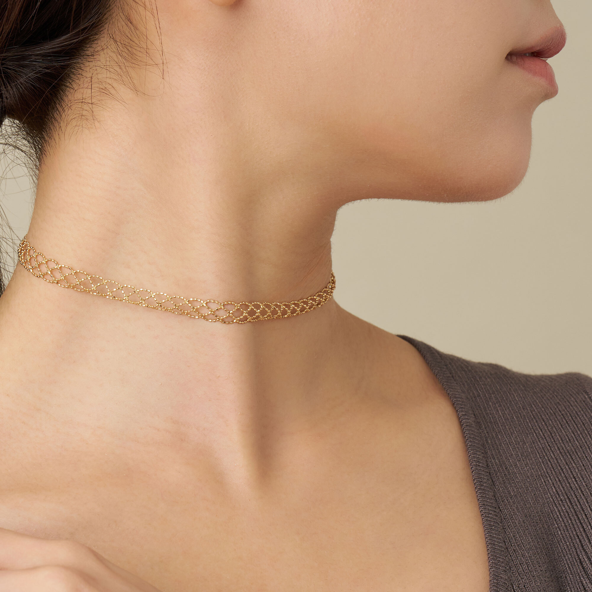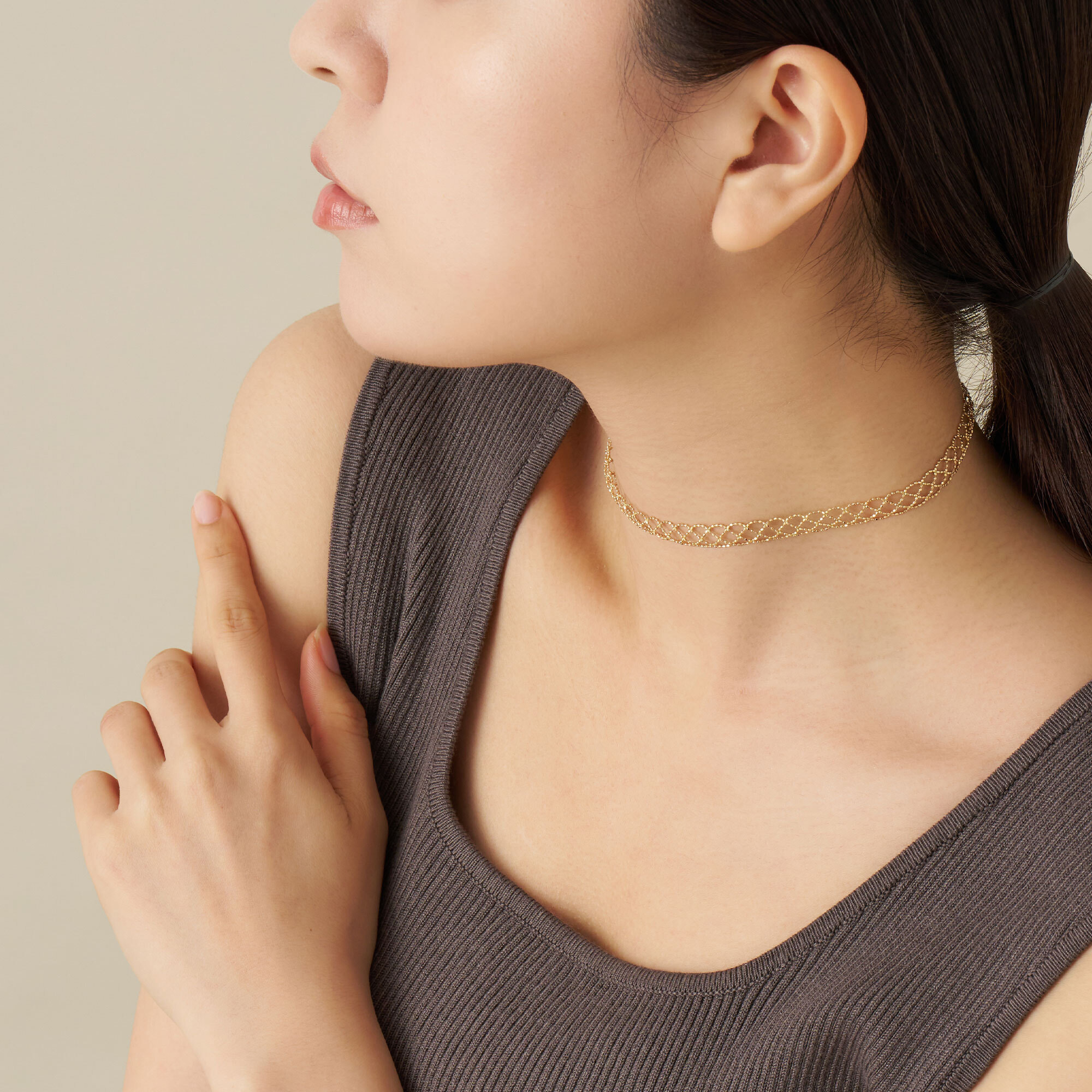 イエローゴールドの煌めきが首元に華やかさをプラス。