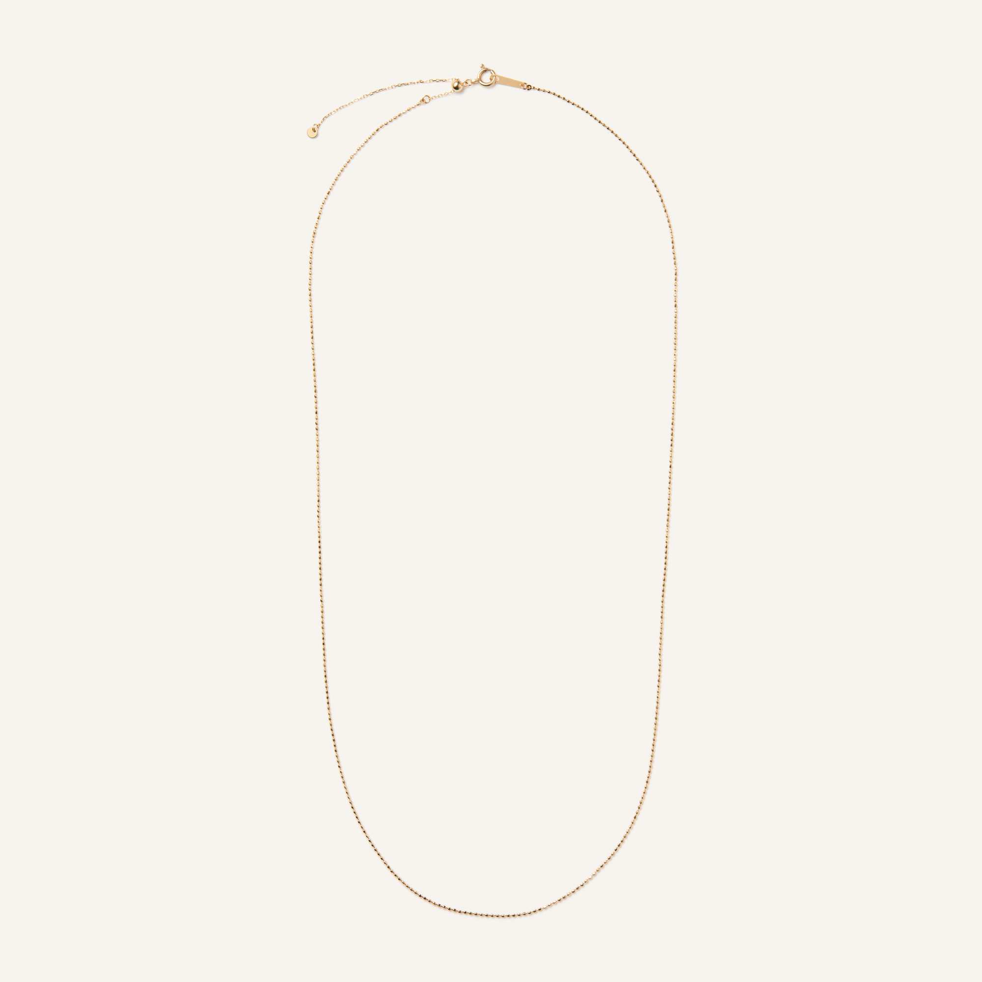 粒感を感じられるチェーンは、肌に載せると繊細なきらめきを放ちます。