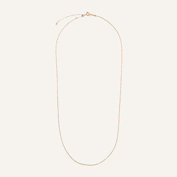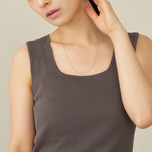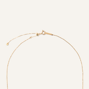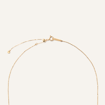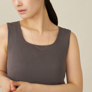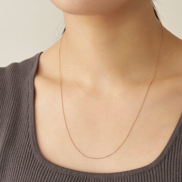 定番スタイルの人気のチェーンはデイリースタイルに馴染み、イエローゴールドの輝きがデコルテを美しく、洗練された印象に。