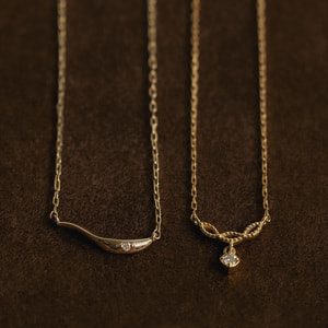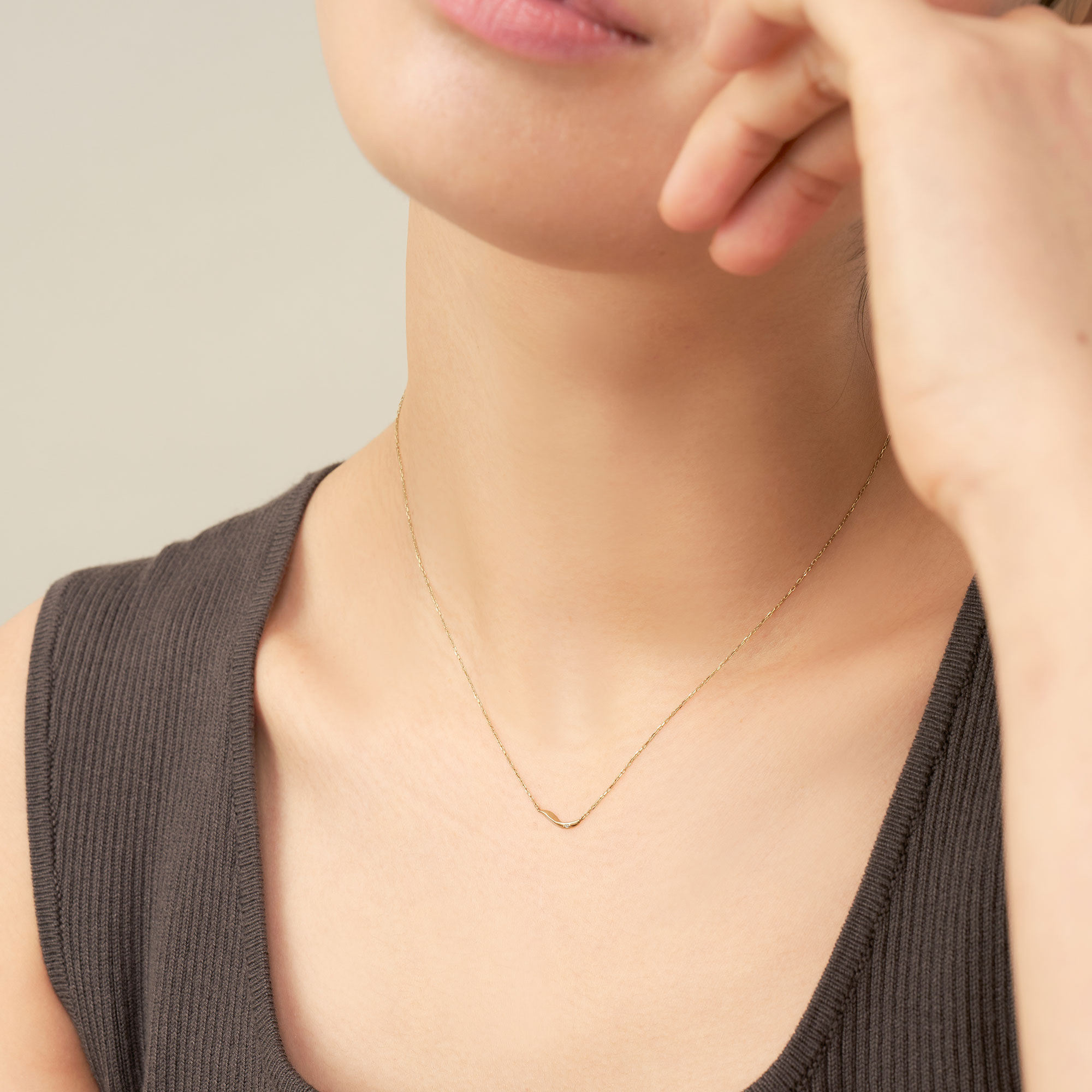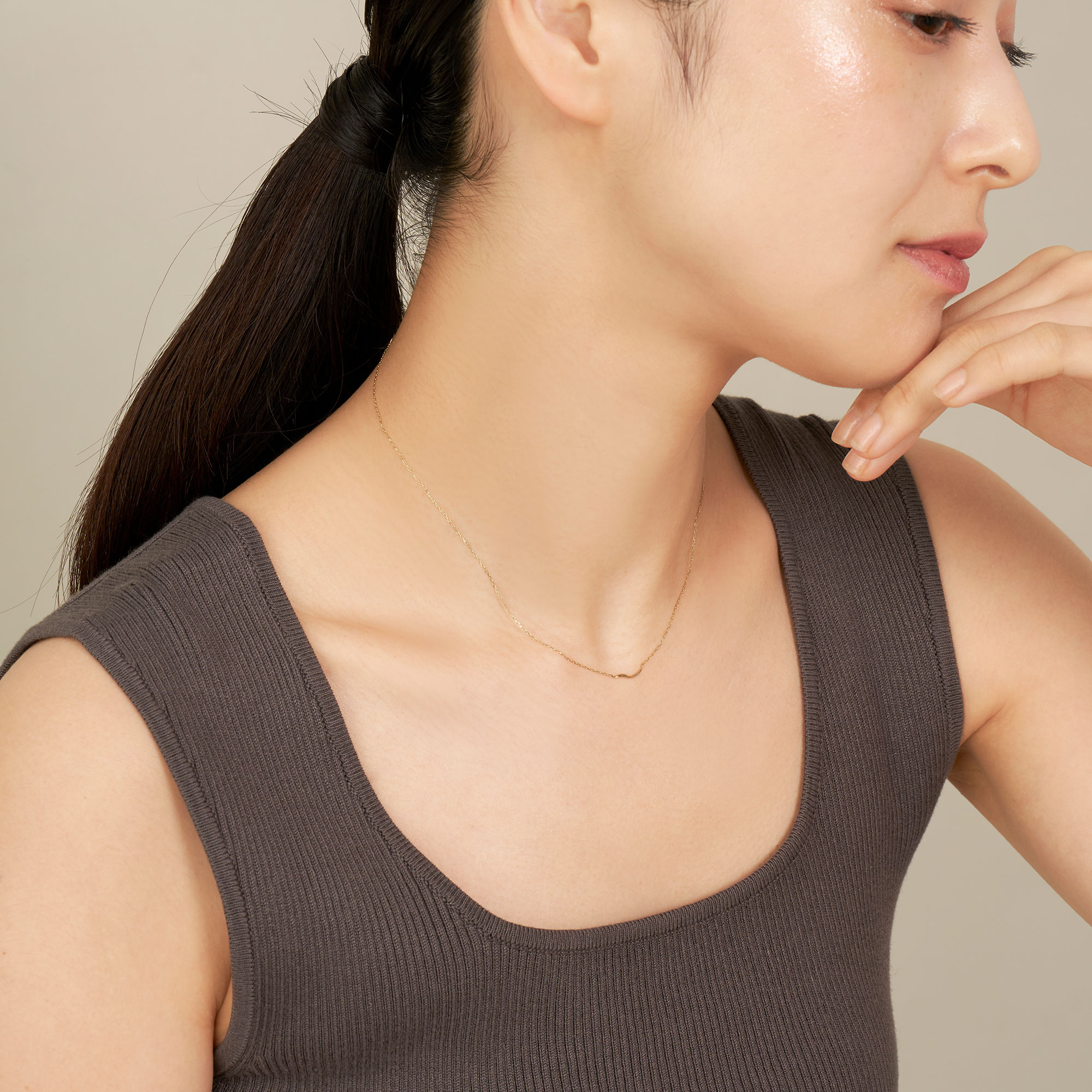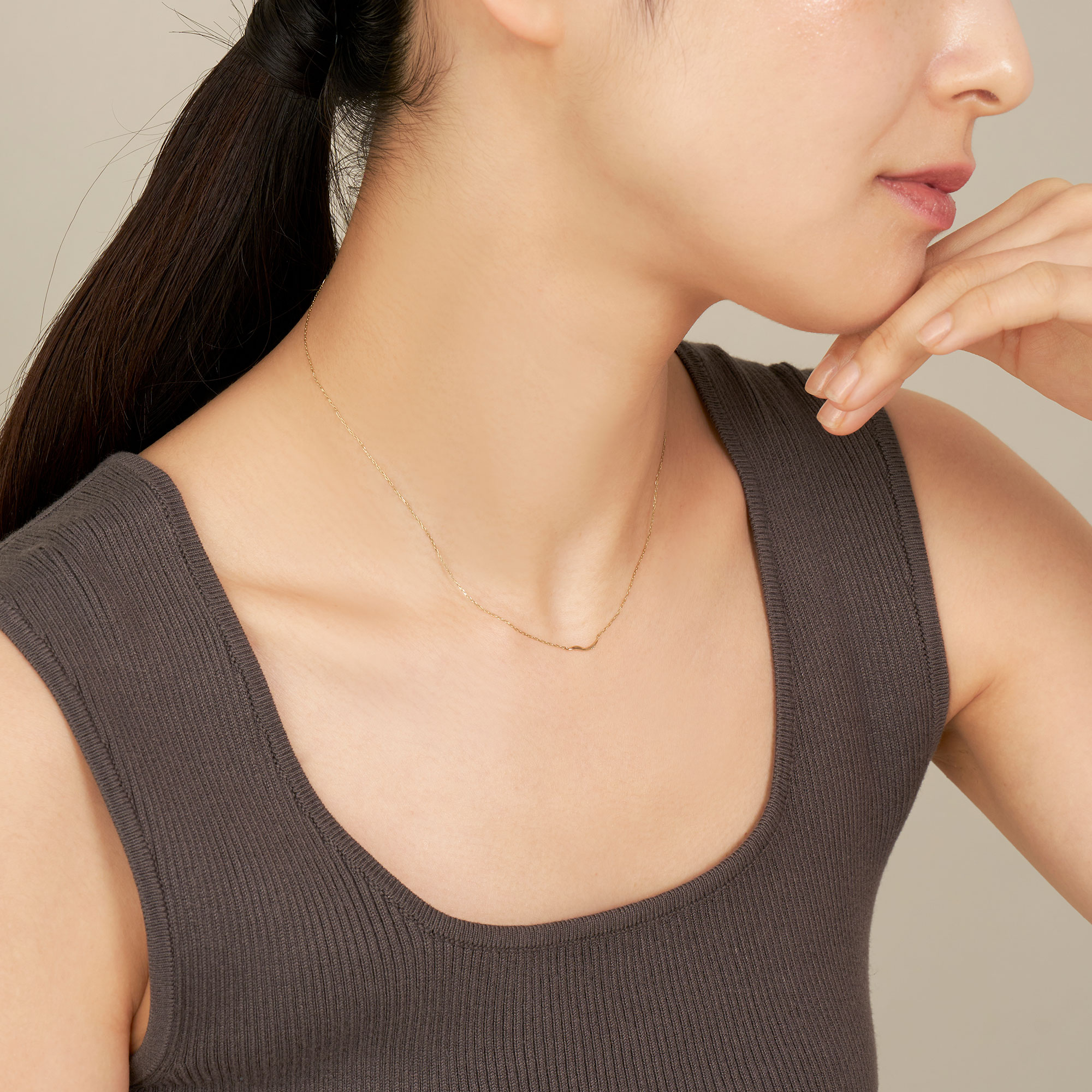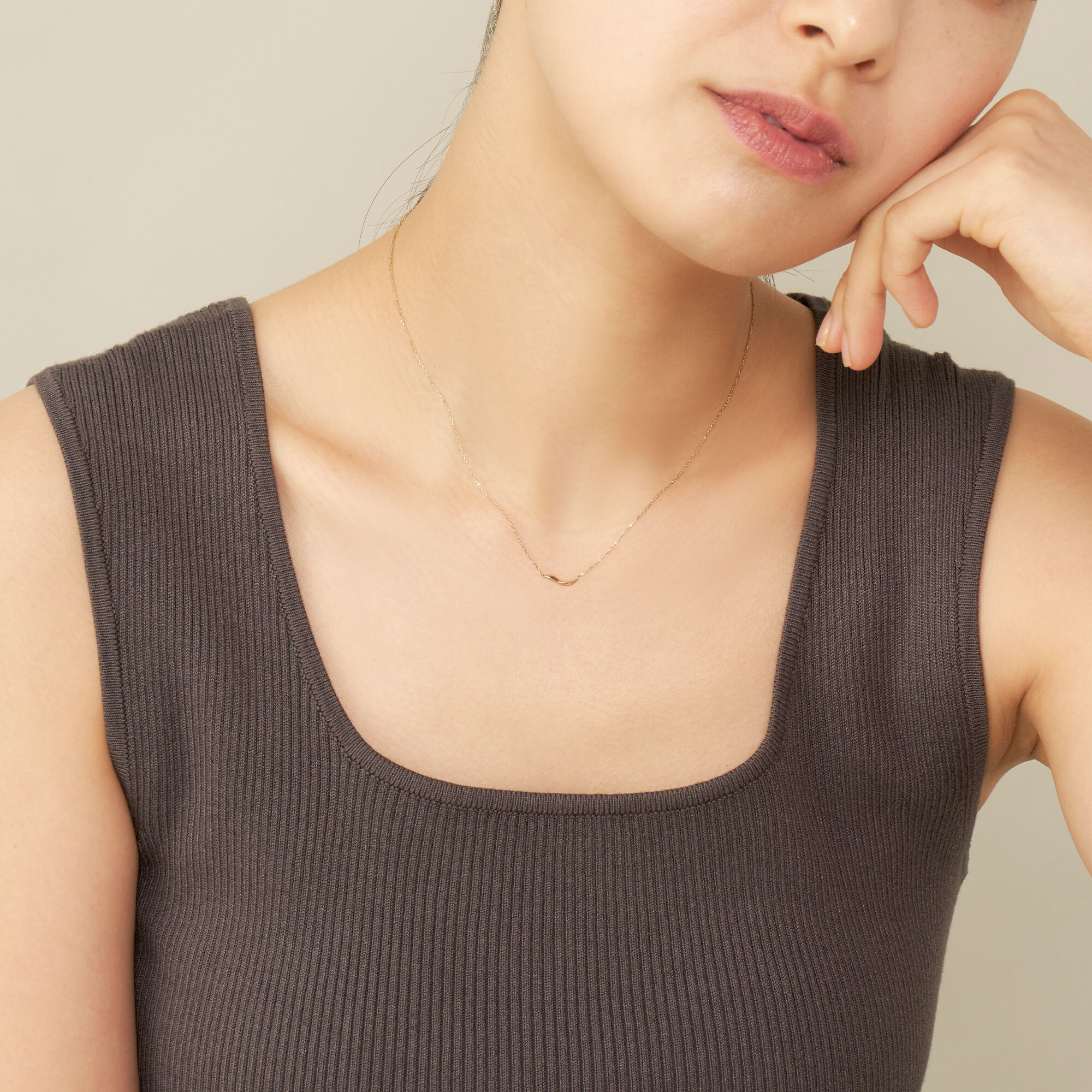 デコルテに添ってなじむ主張しすぎないネックレスは、1つは持っておきたいアイテムです。