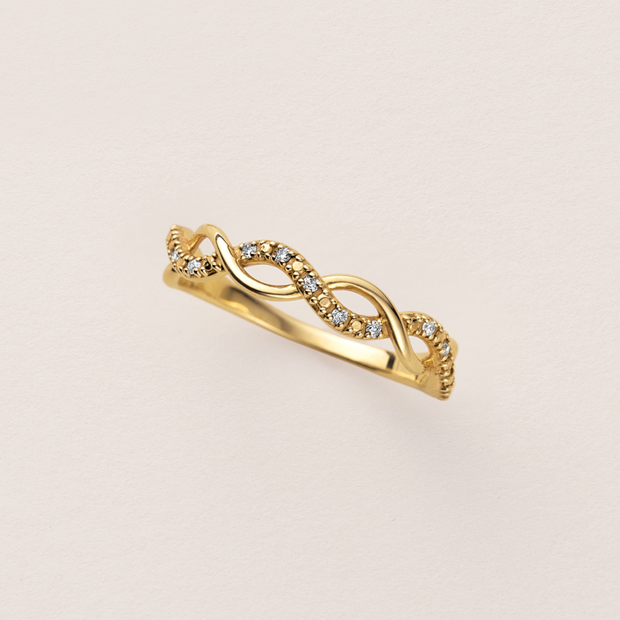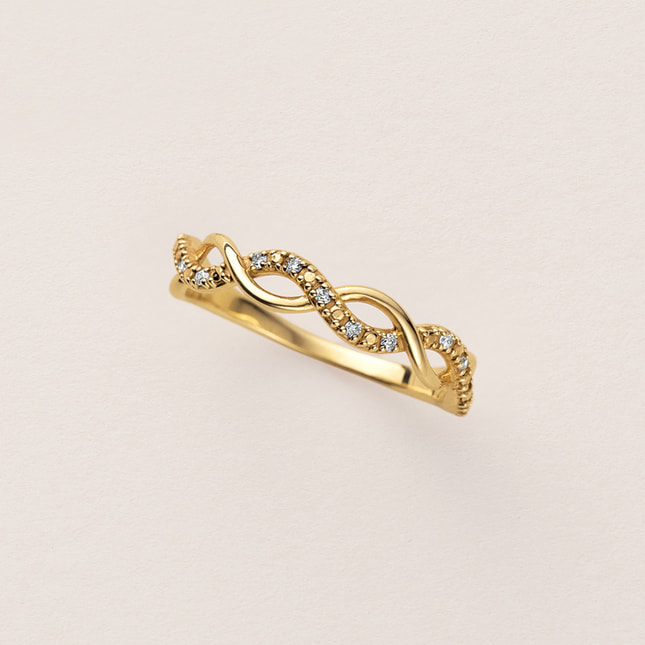 永遠や無限の可能性を意味する∞マークをモチーフにしたリング。