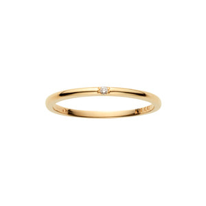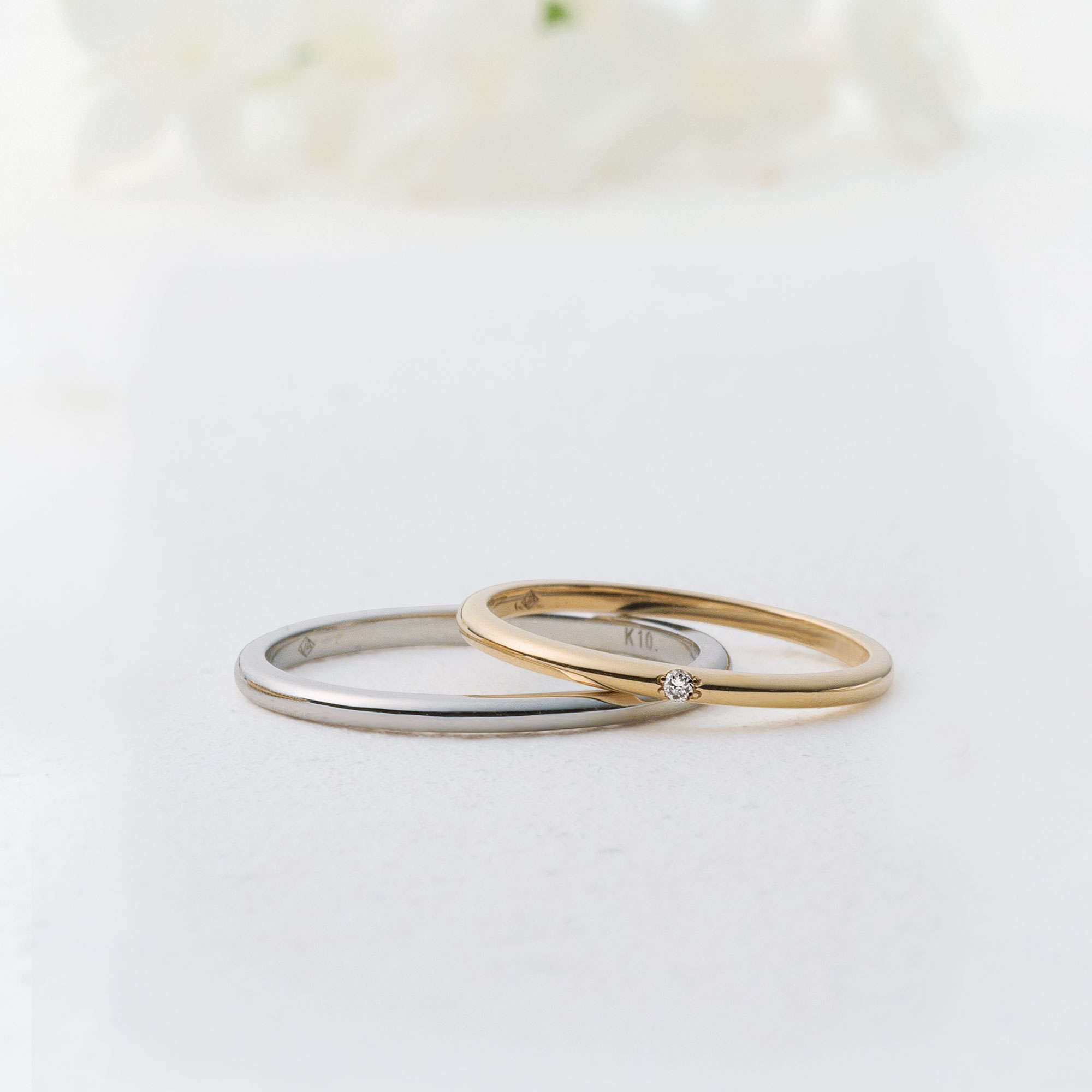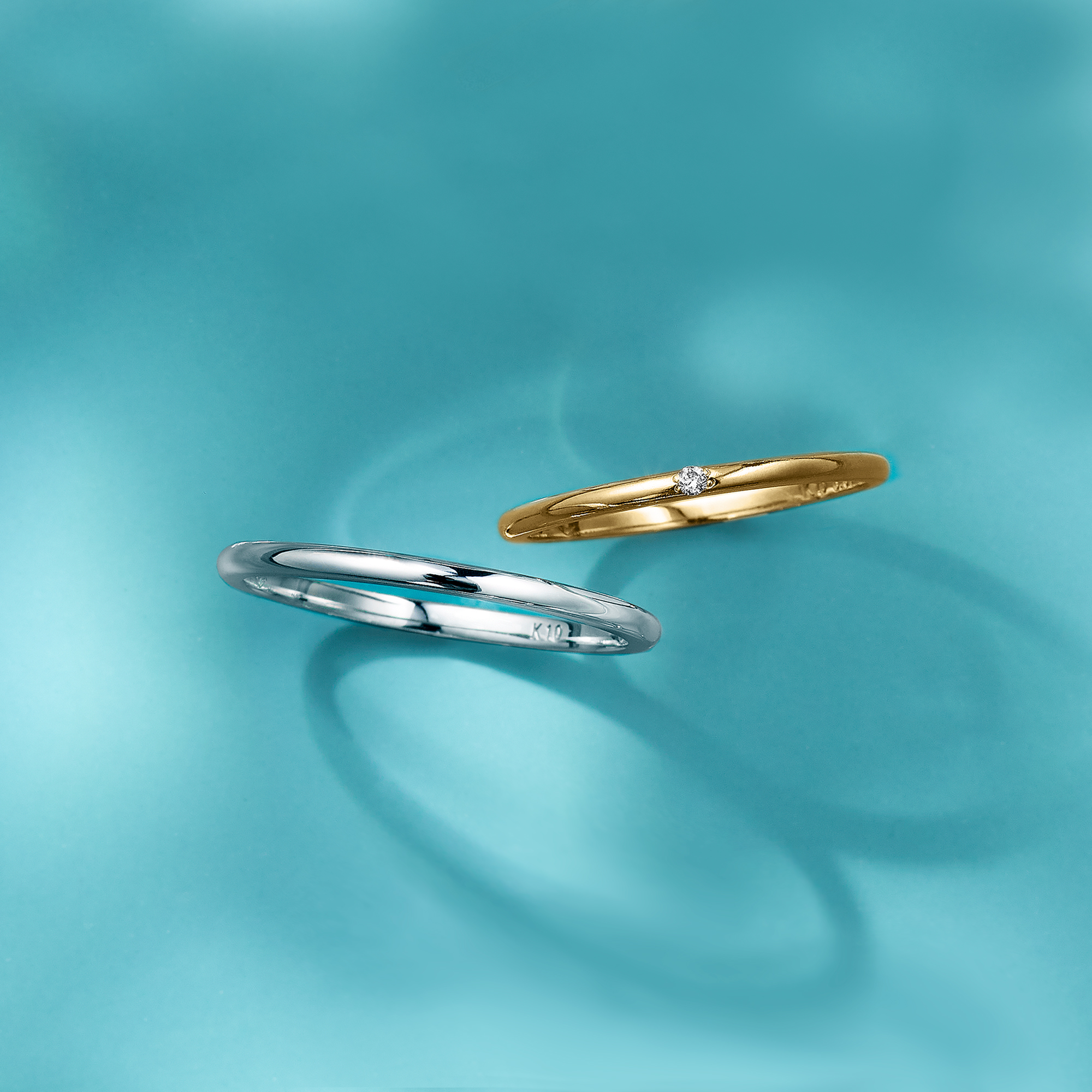 地金の艶が美しいイエローゴールドに、シンプルながら存在感を放つダイヤモンドが輝くデザインです。