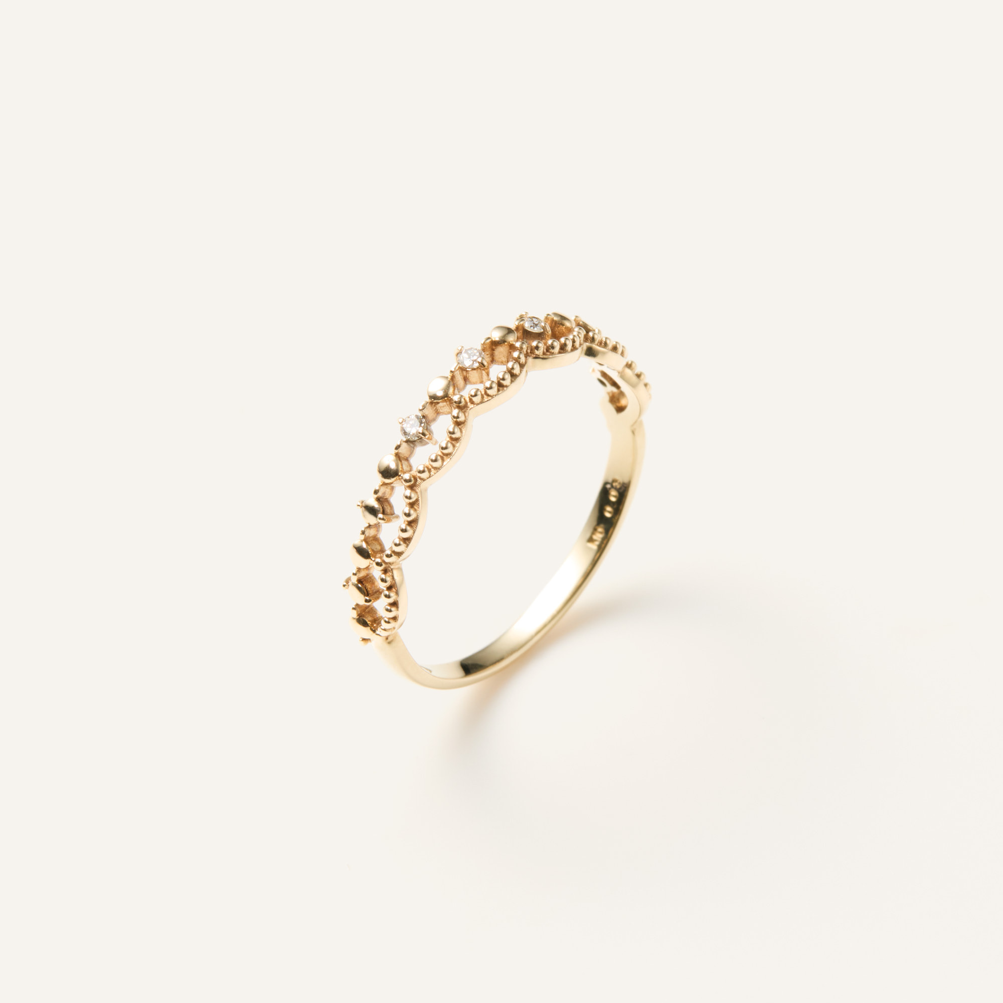艶やかなイエローゴールドの地金ときらめくダイヤモンドが華やかな印象を与えます。
