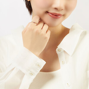ダイヤモンドのサイドに施したミルグレインもデザインのポイント。繊細な表情をプラスし女性らしい手元を演出してくれます。