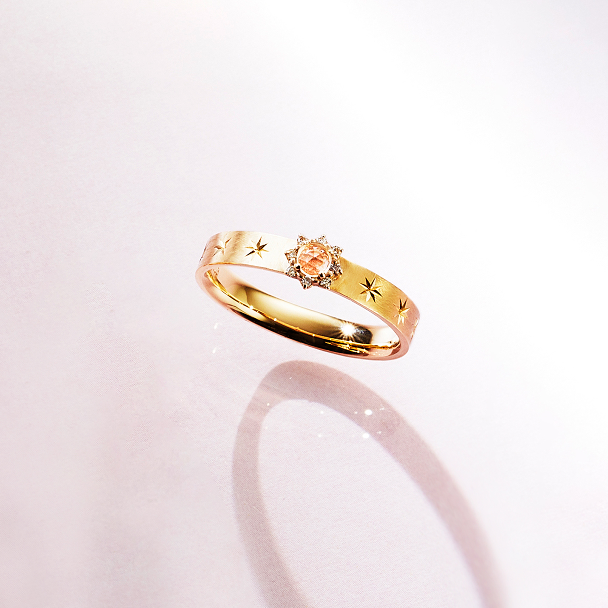 マットなゴールドとのコントラストが美しいアームには、職人が一つ一つ丁寧に仕上げた星が優しく光ります。
