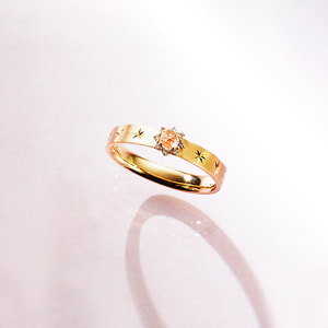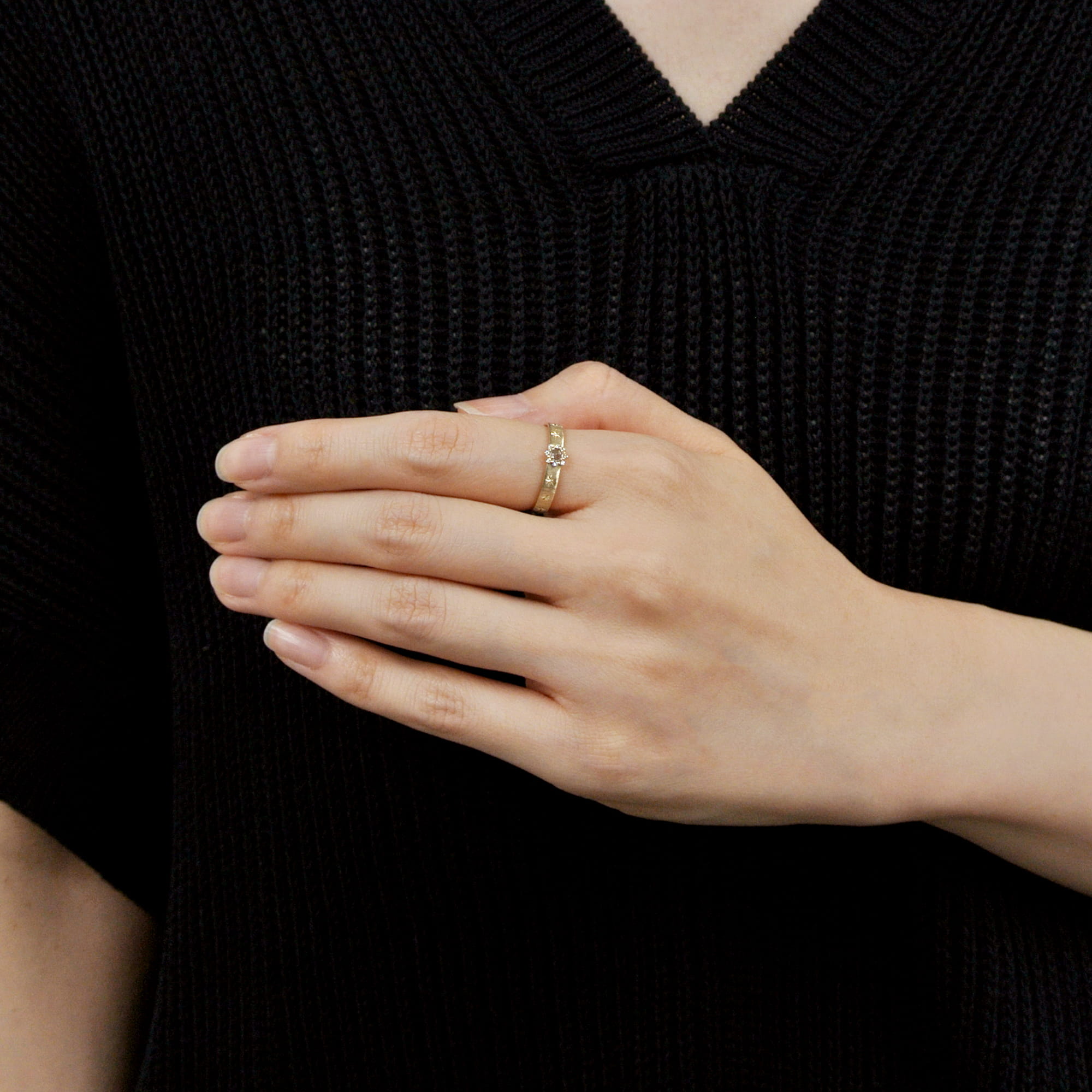 マットなゴールドとクリアに輝くホワイトベリルが手元に優しい輝きを添えるリング。