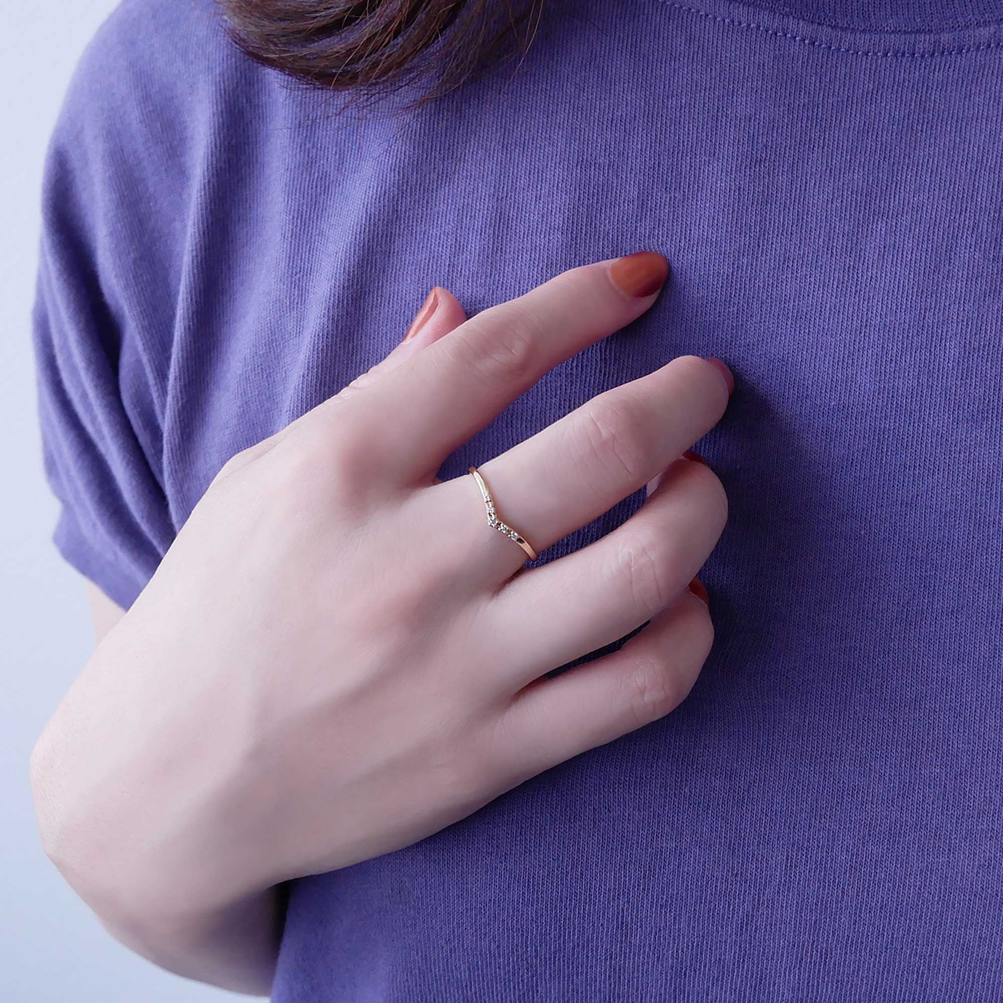 優しげなV字ラインのリングは手元を明るくきれいに見せます。