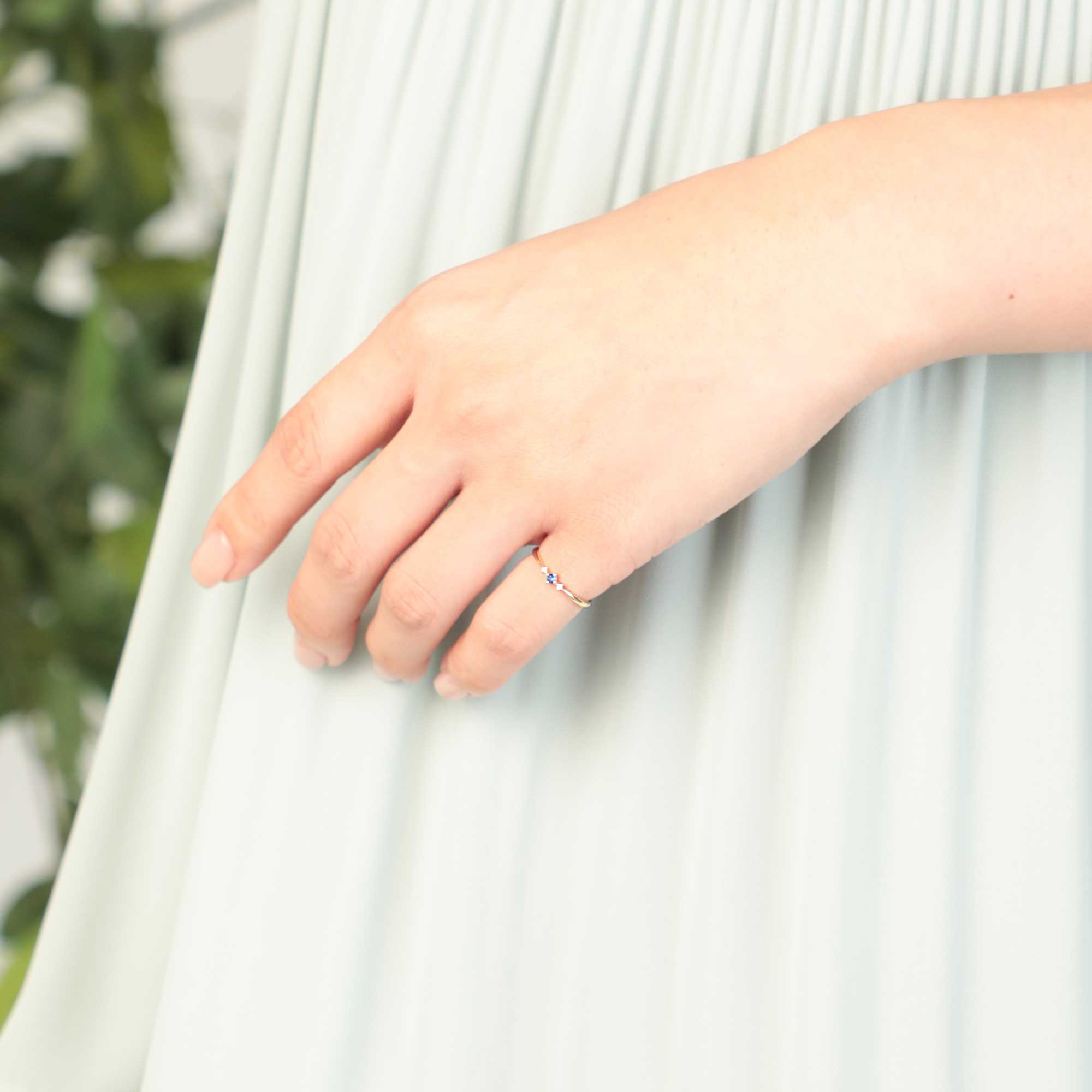 サファイアとダイヤモンドの繊細な煌めきを楽しめるピンキーリング。