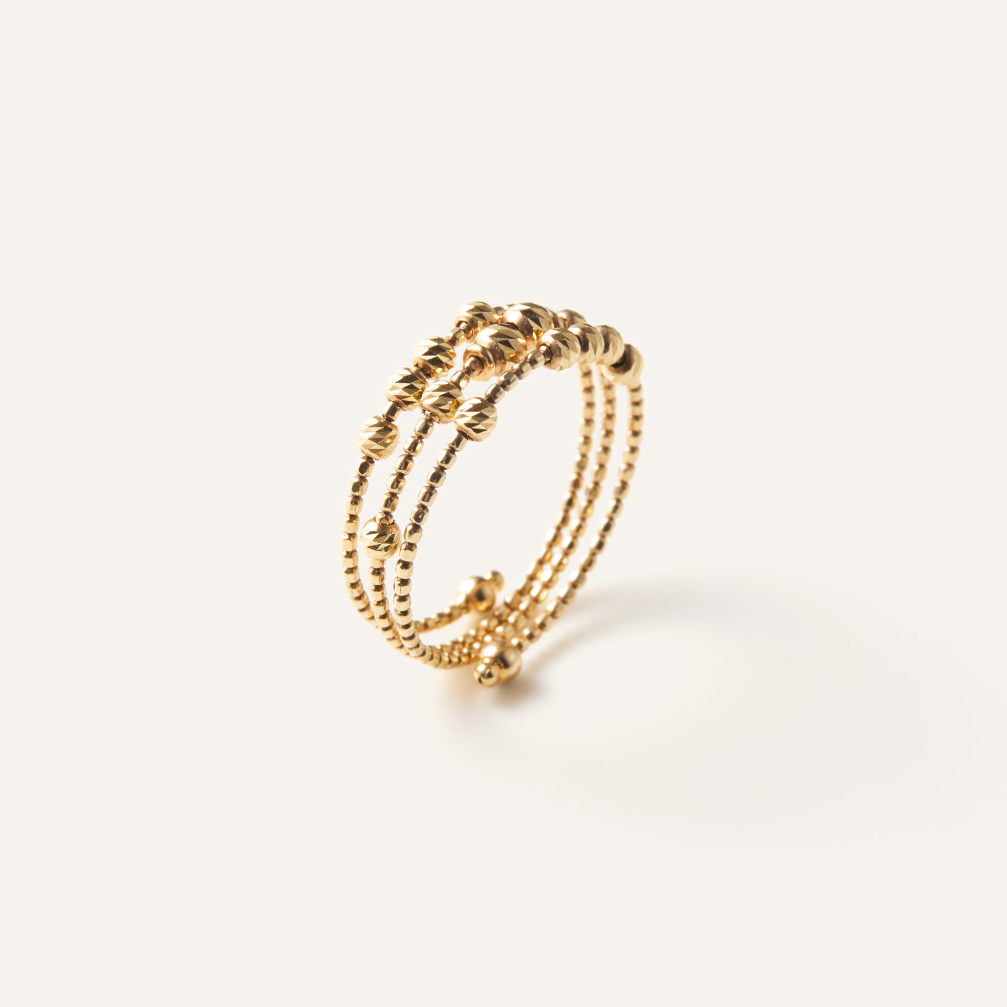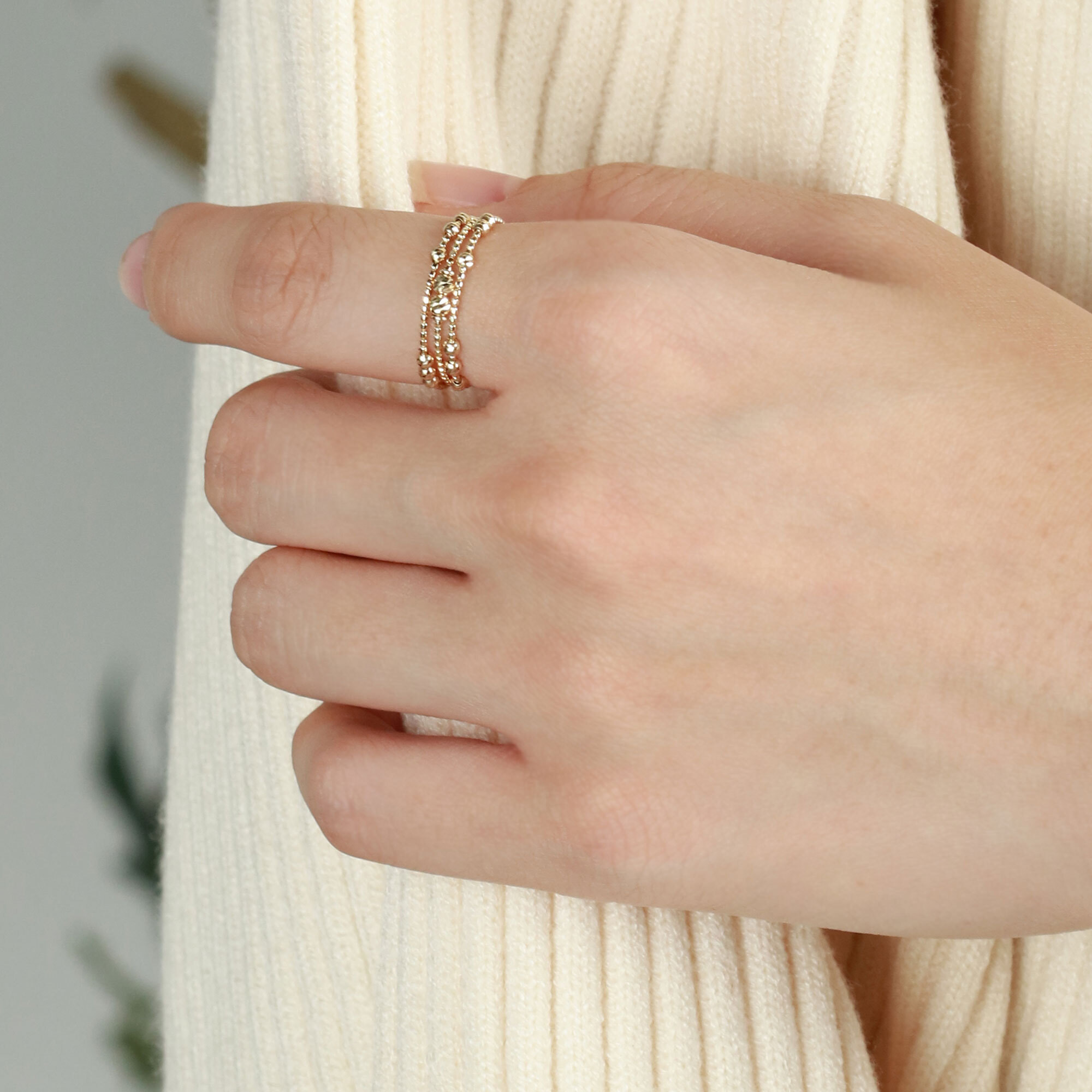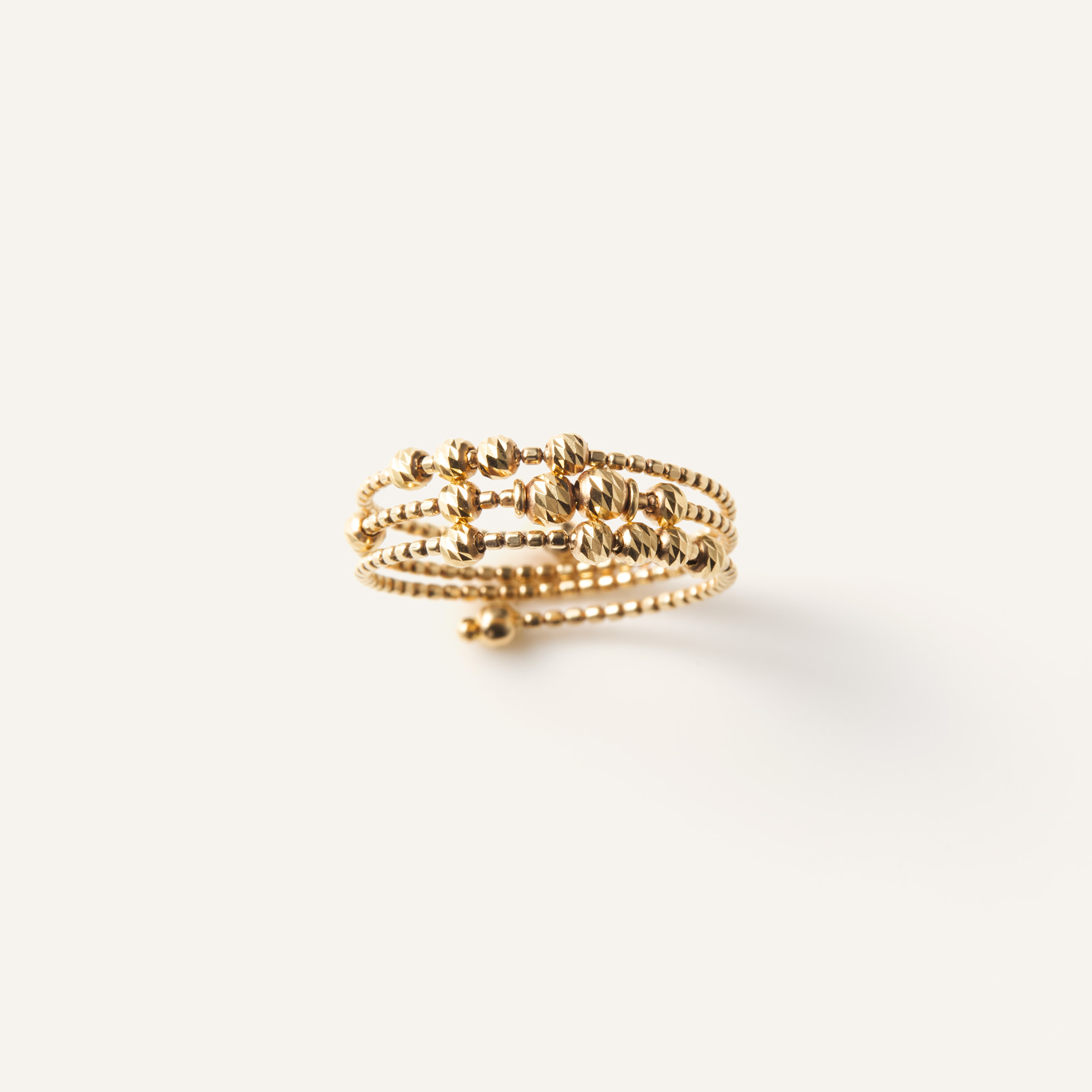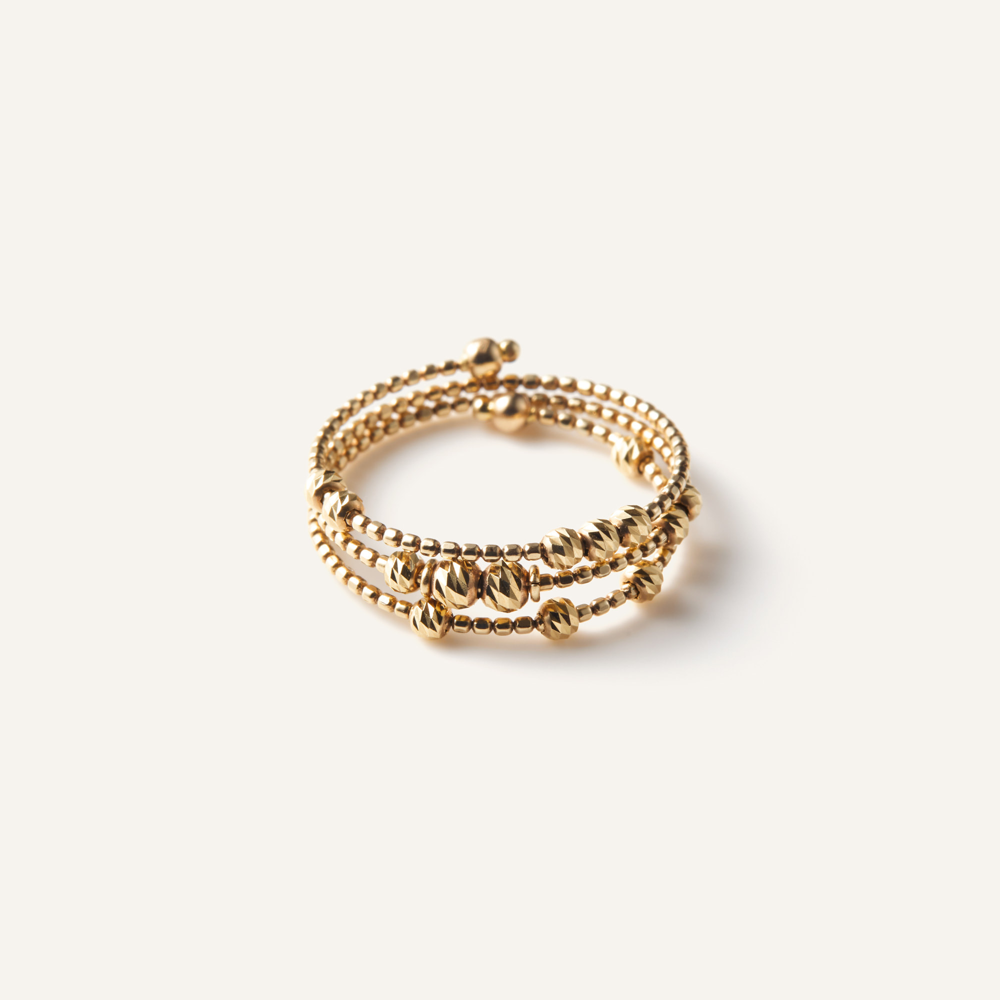 形状記憶ワイヤーに施したカットビーズがキラキラと輝きを放つリング。