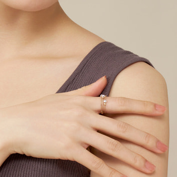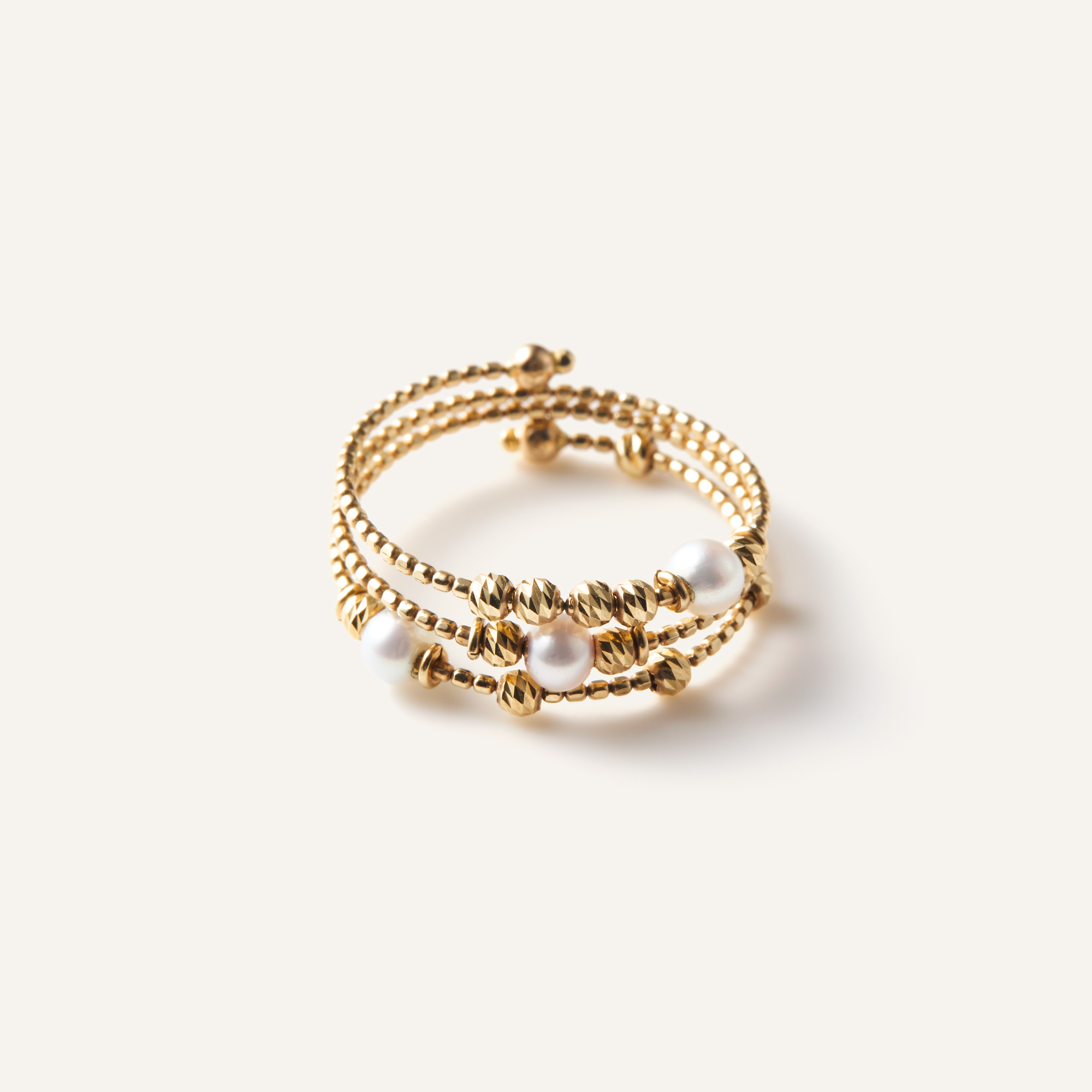 形状記憶ワイヤーに施したカットビーズと淡水パールが華やかなリング。
