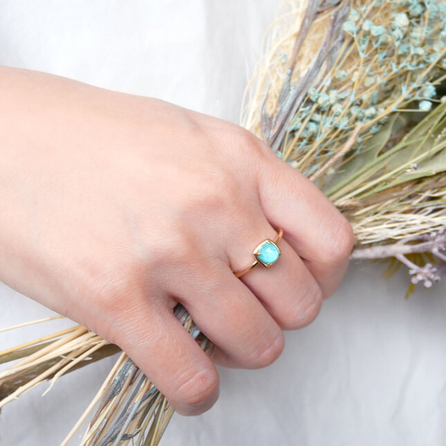 ターコイズとクォーツの2つの石をダブレットという技法で張り合わせています。