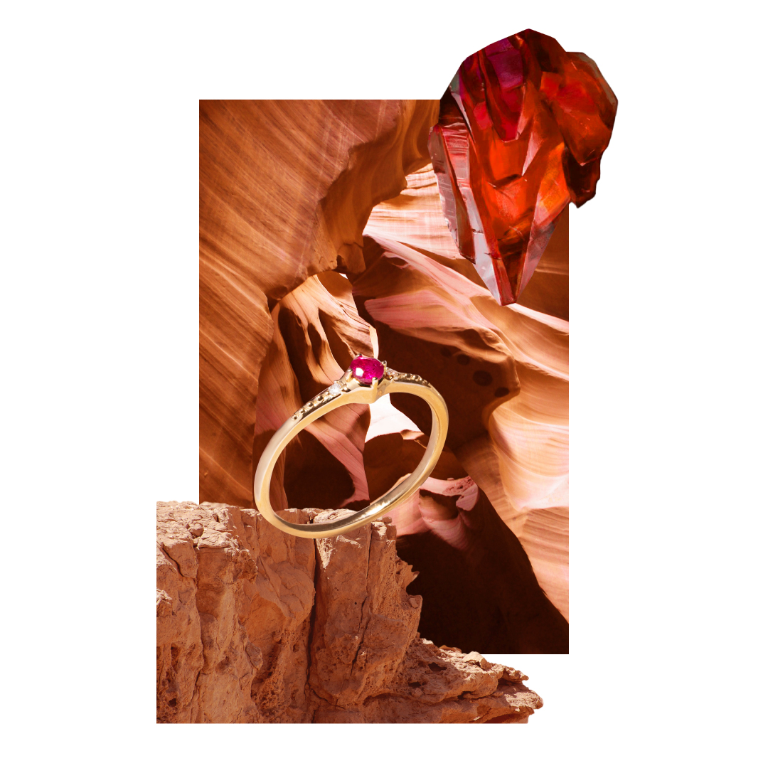 ルビーとダイヤモンドの煌めきを楽しめるリング。
