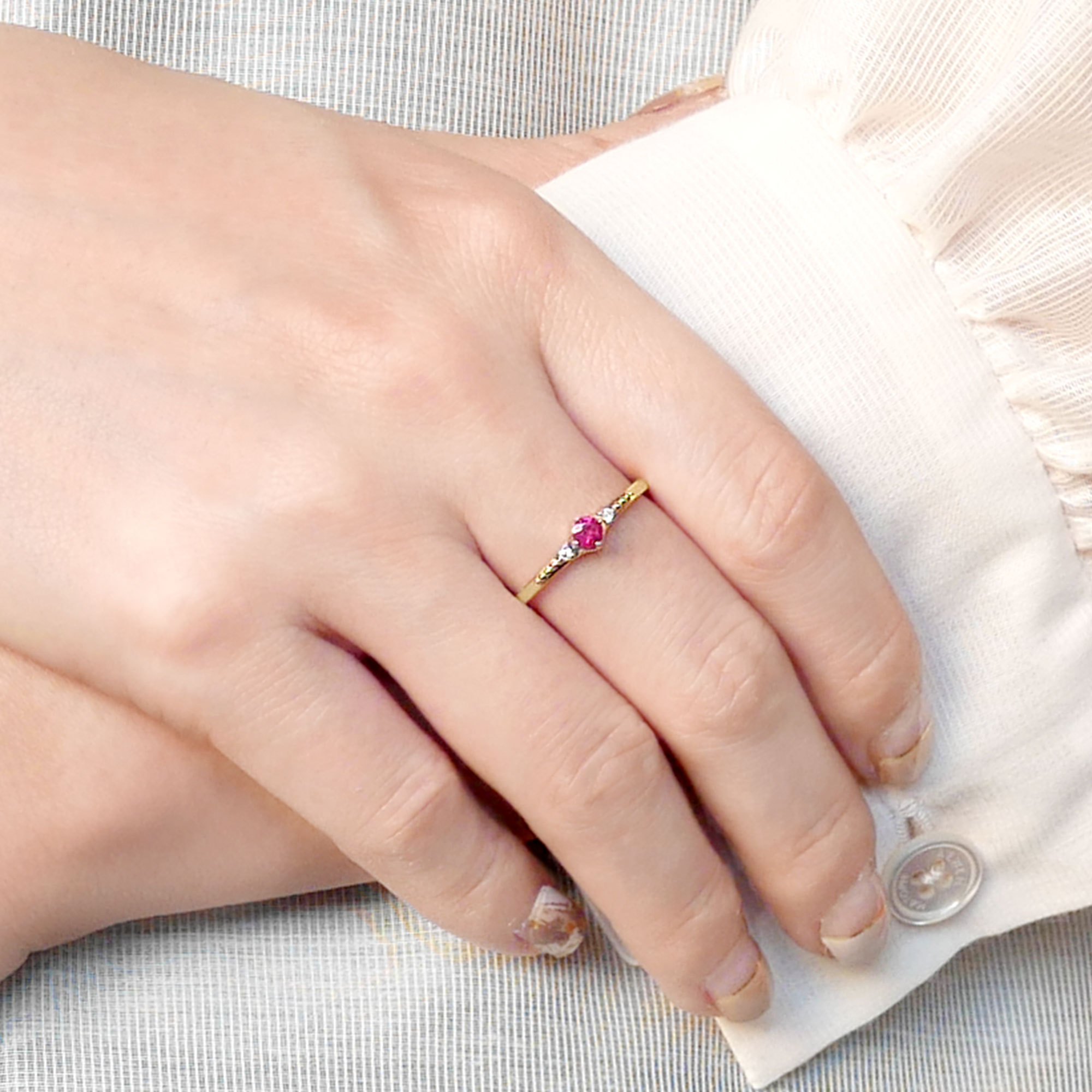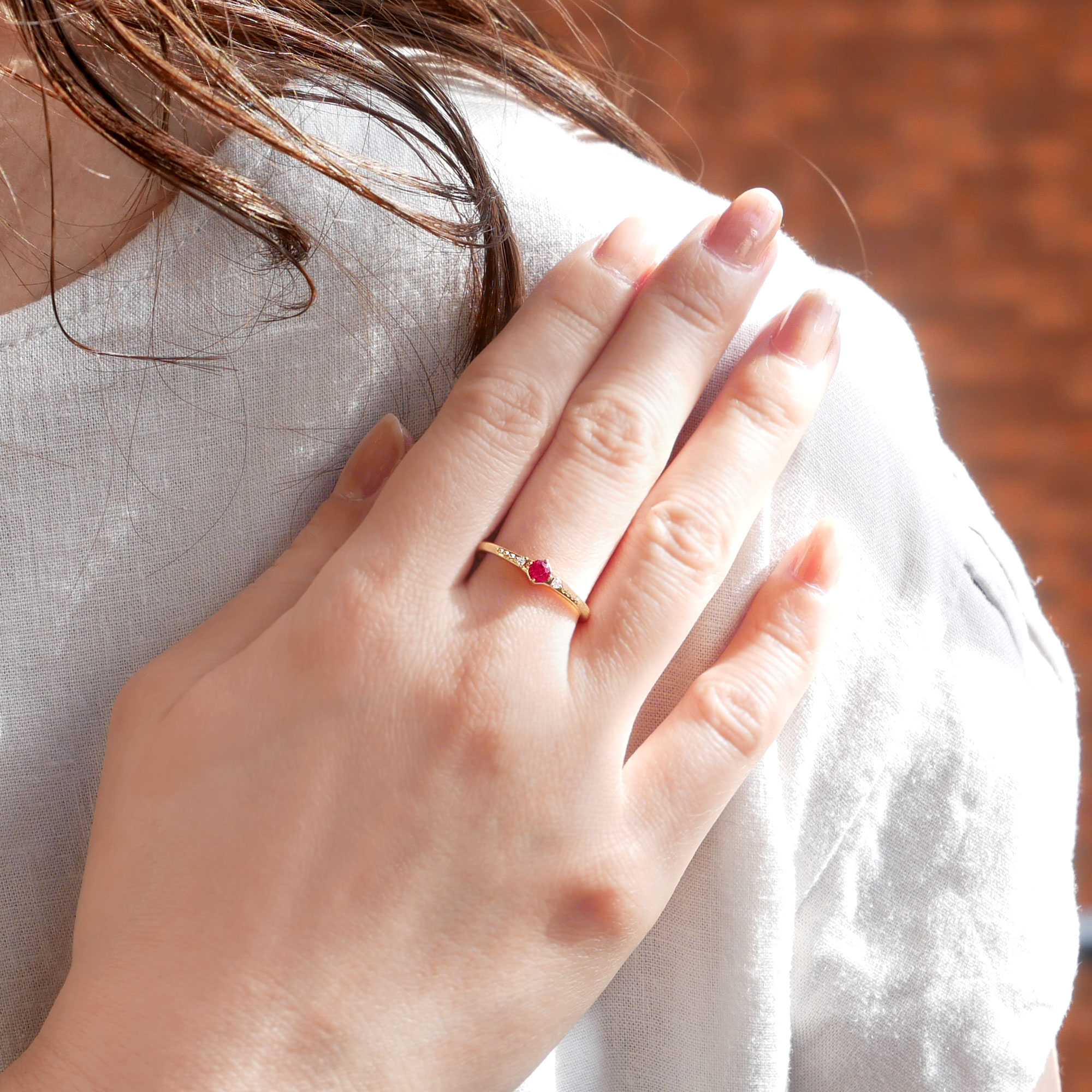 鮮やかなルビーリングはコーディネートに加えるだけで、アクセントになってくれそう。