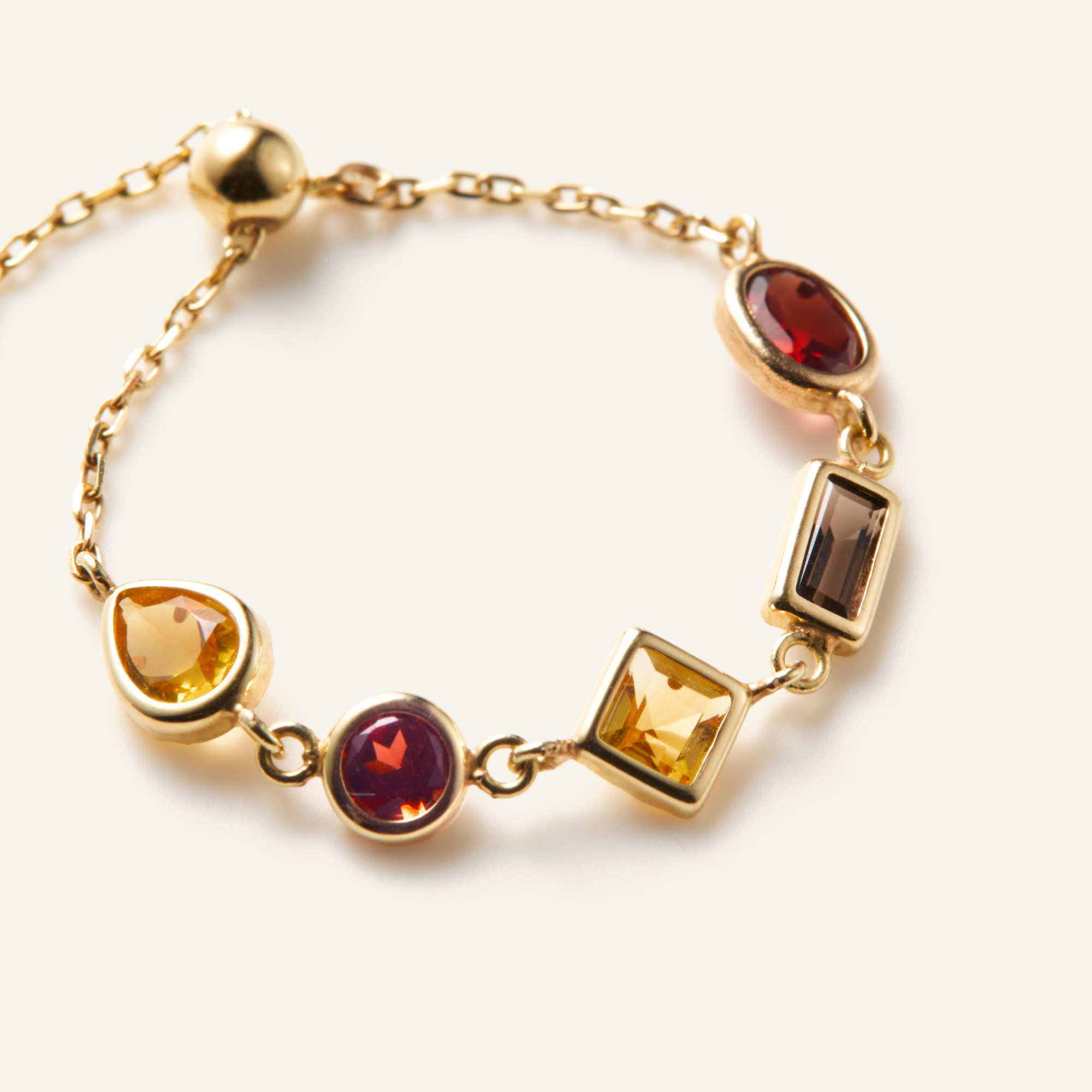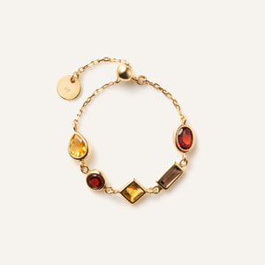 コニャックの色合いを表現するのにぴったりなシトリン、ガーネット、スモーキークォーツをセレクトしています。