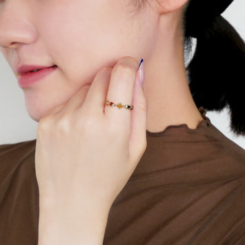 地金でキリッと縁取ることで、それぞれの石の輪郭を際立たせます。