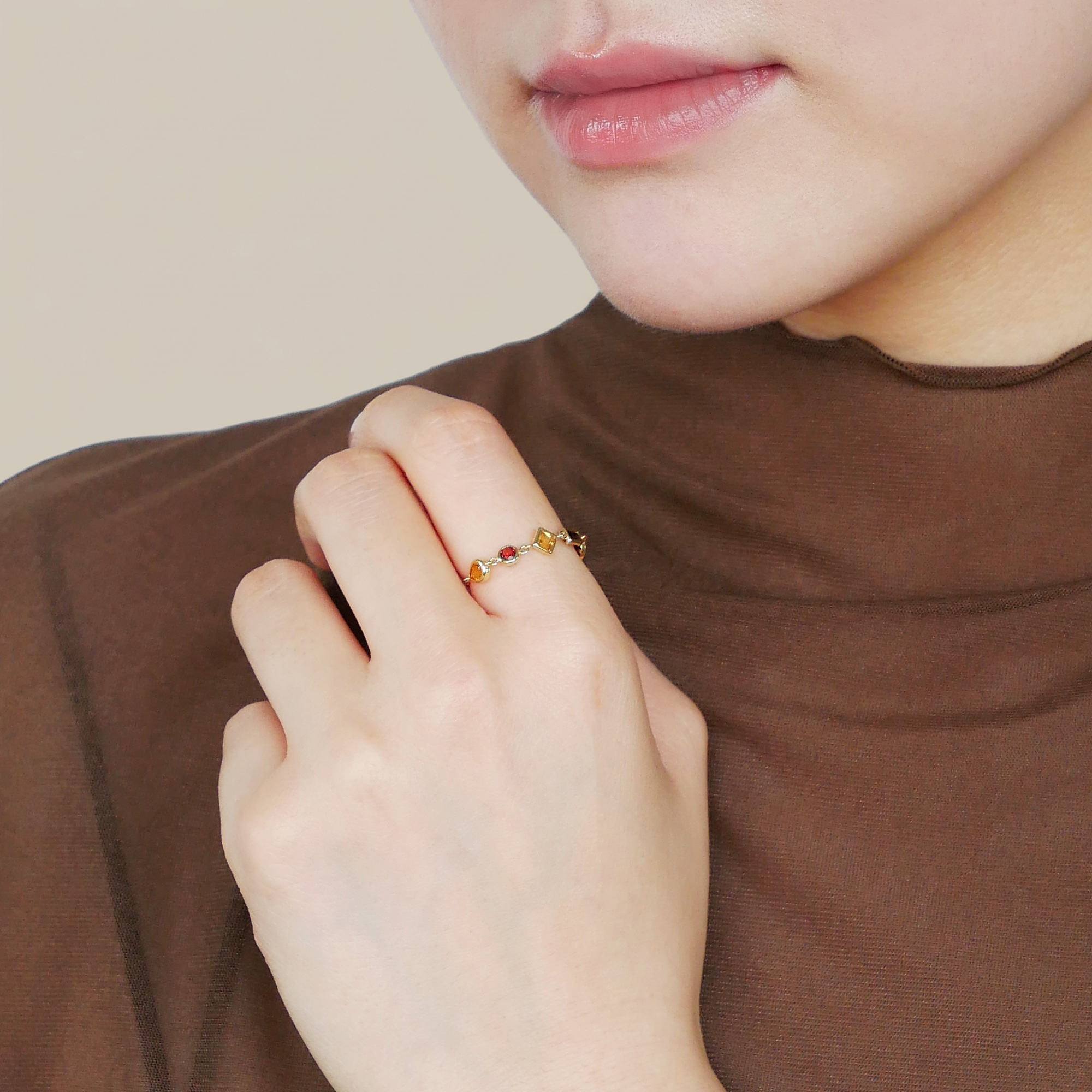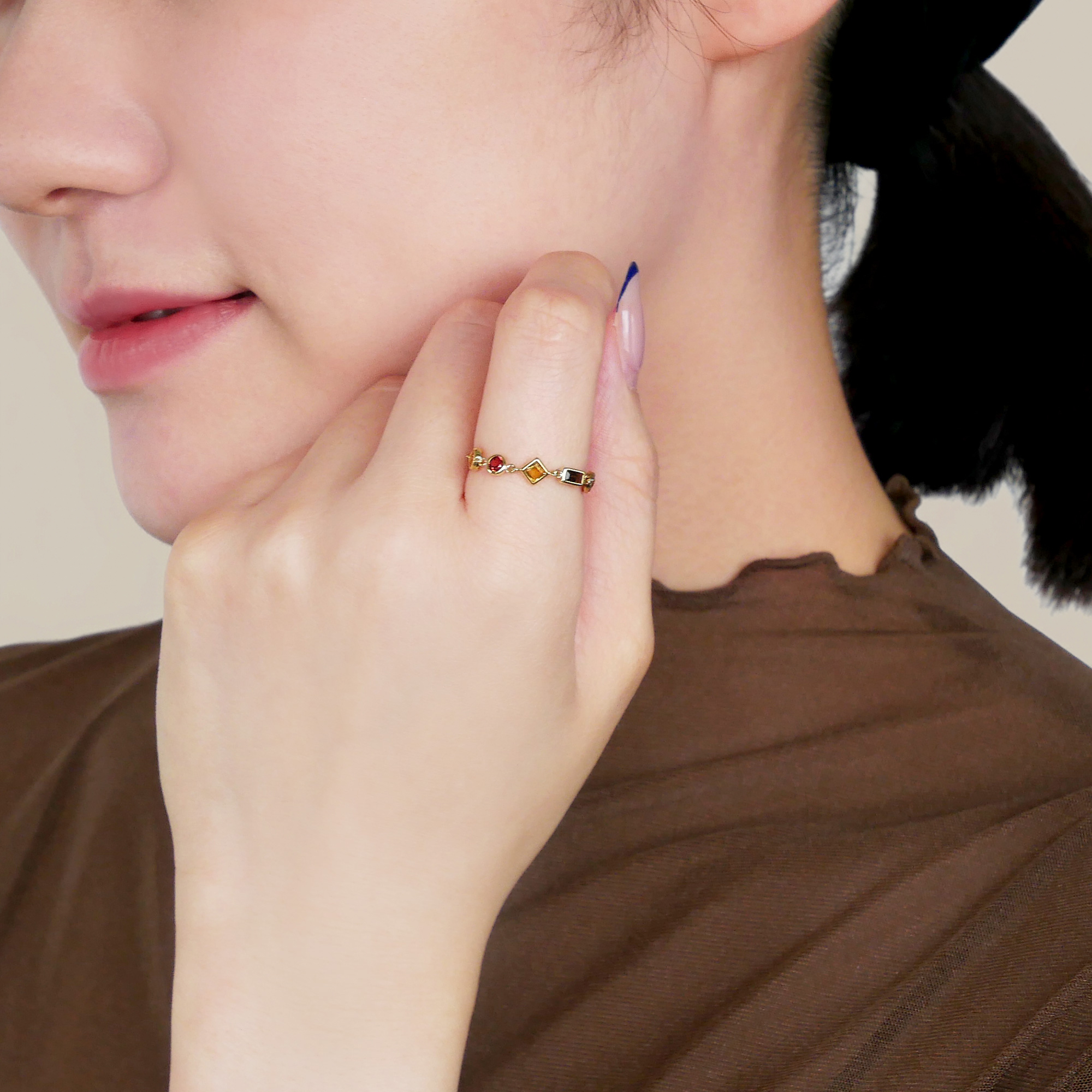 コニャックをイメージしたカラーが大人っぽいチェーンリング。