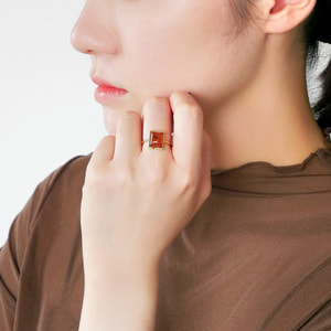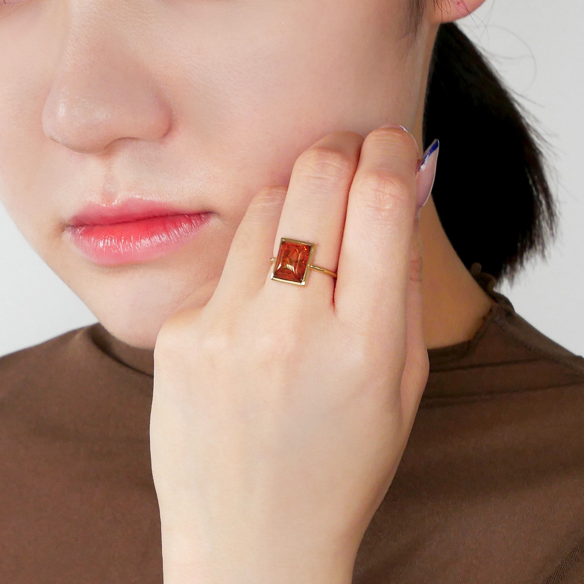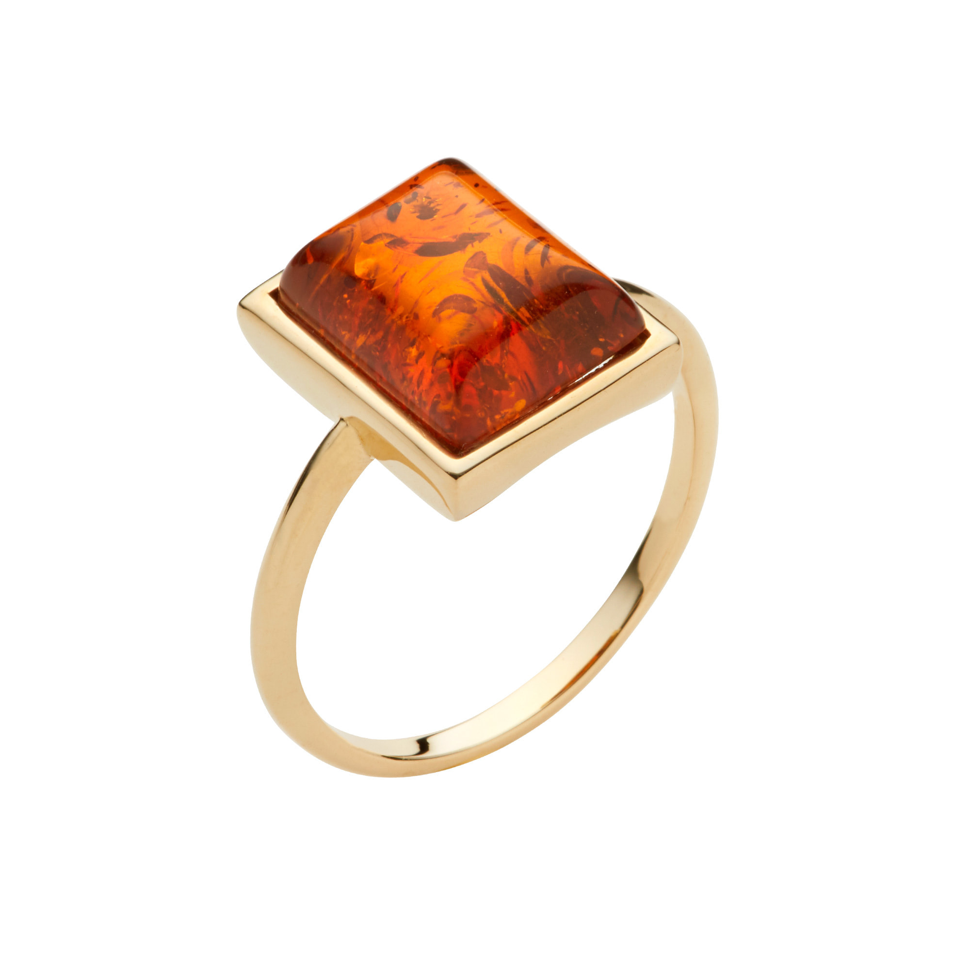 レクタングルカットのバルティックアンバー(琥珀)のリング。