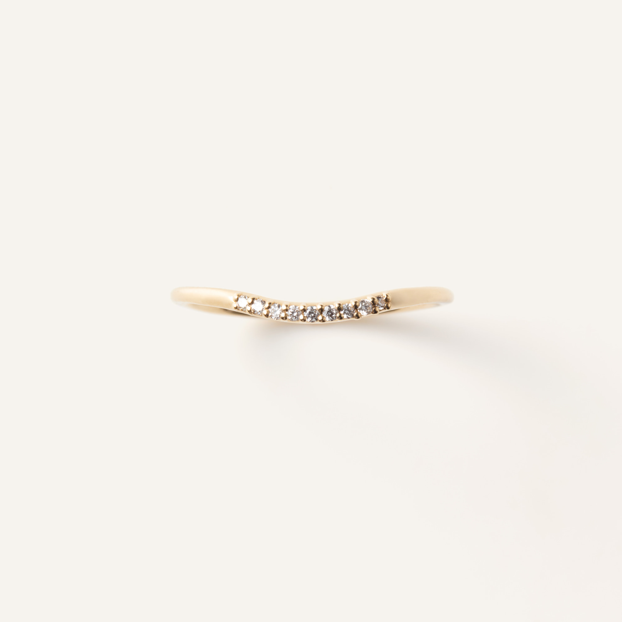 ダイヤモンドの輝きで描く流線の優雅なフォルムはセンターにきらめきを集めることで、美しいラインを引き立てます。