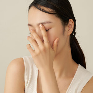 トップのあるリングとの重ね着けのスタイルもおすすめです。