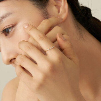 ダイヤモンドリングは手元を明るくきれいに見せてくれ、スタイリングにきらめきをプラス。