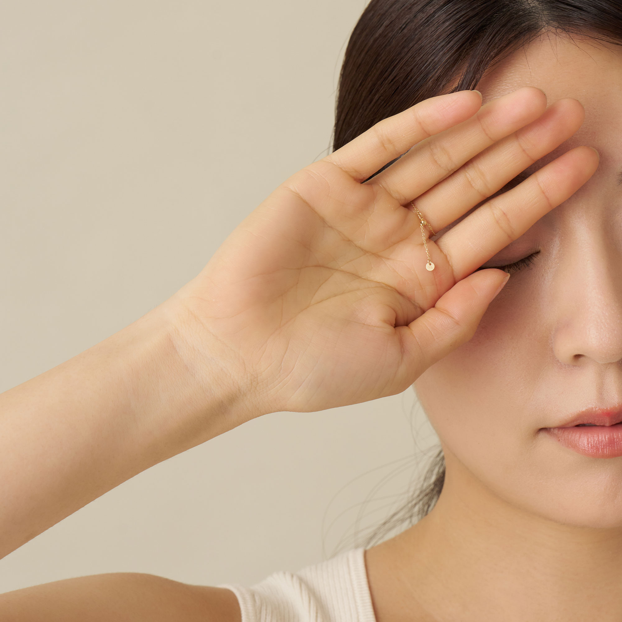 繊細なカットアズキチェーンを組み合わせたチェーンリングは、スライドアジャスターでサイズを自由に調整でき、気分で着ける指を変えられるのも嬉しいポイントです。