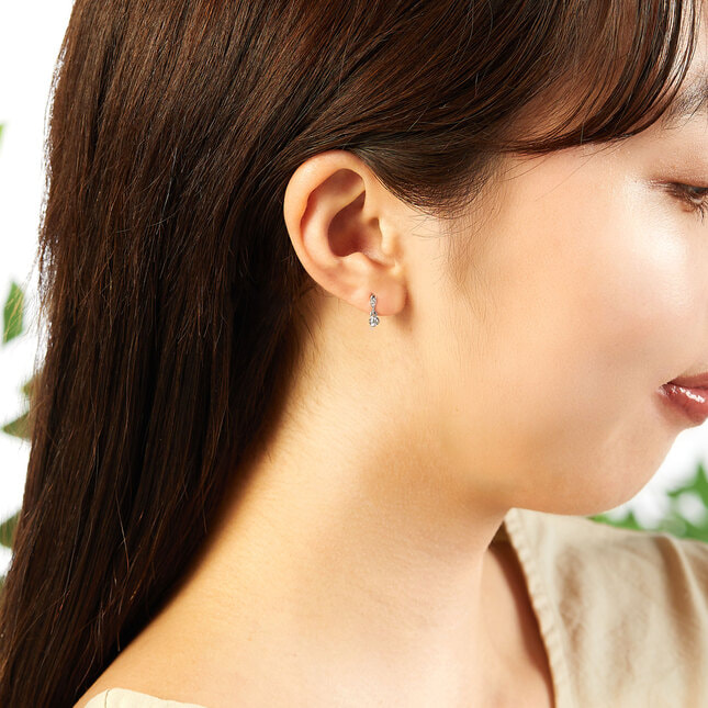 ダイヤモンドがちら揺れするたびに繊細な輝きが広がり、横顔を大人っぽく見せてくれそう。