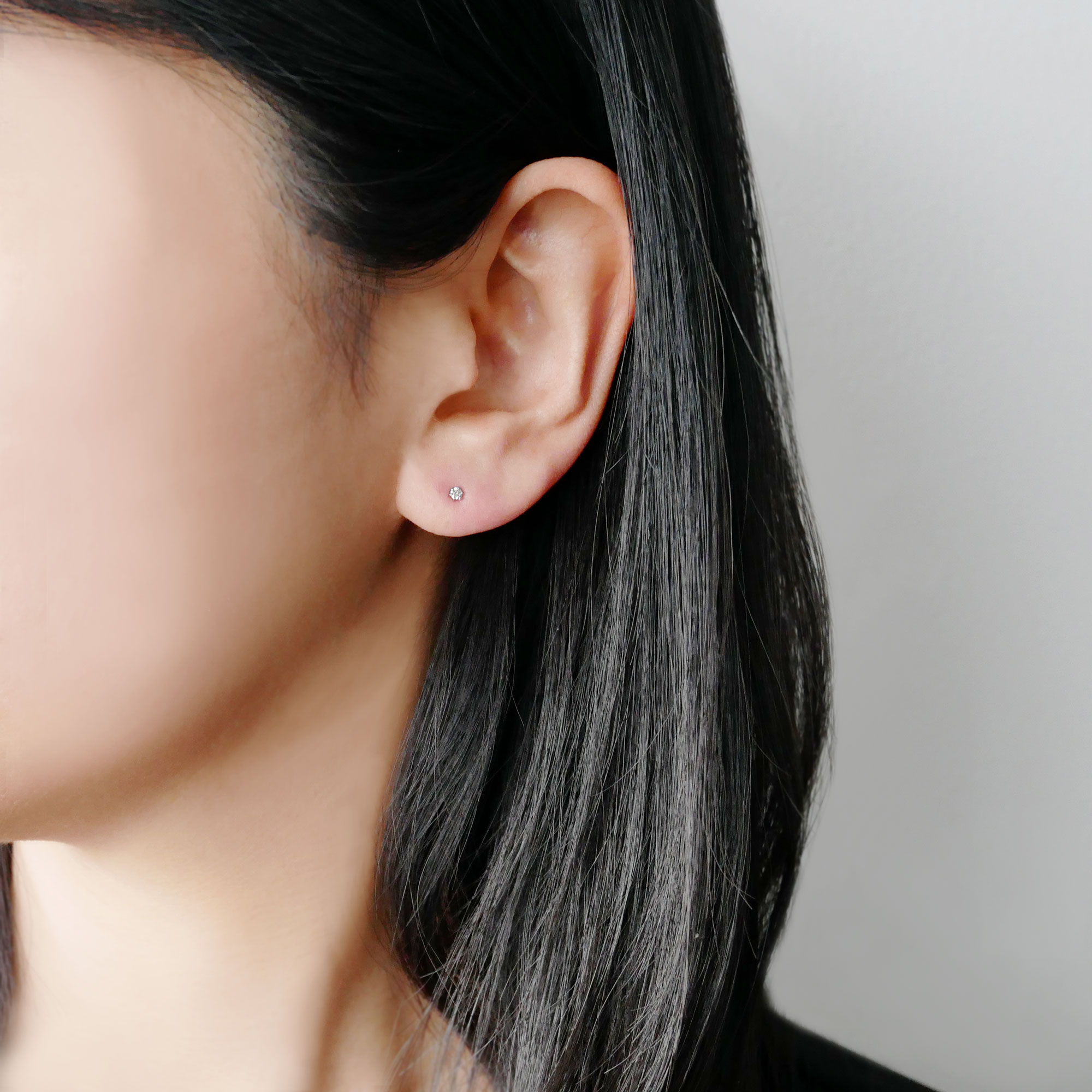 プラチナのピュアな白い輝きは、横顔に大人っぽい印象をプラスしてくれます。