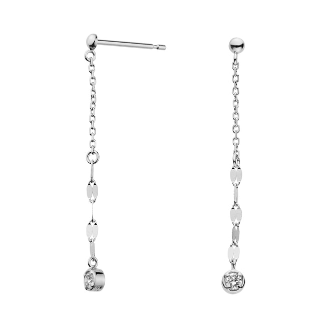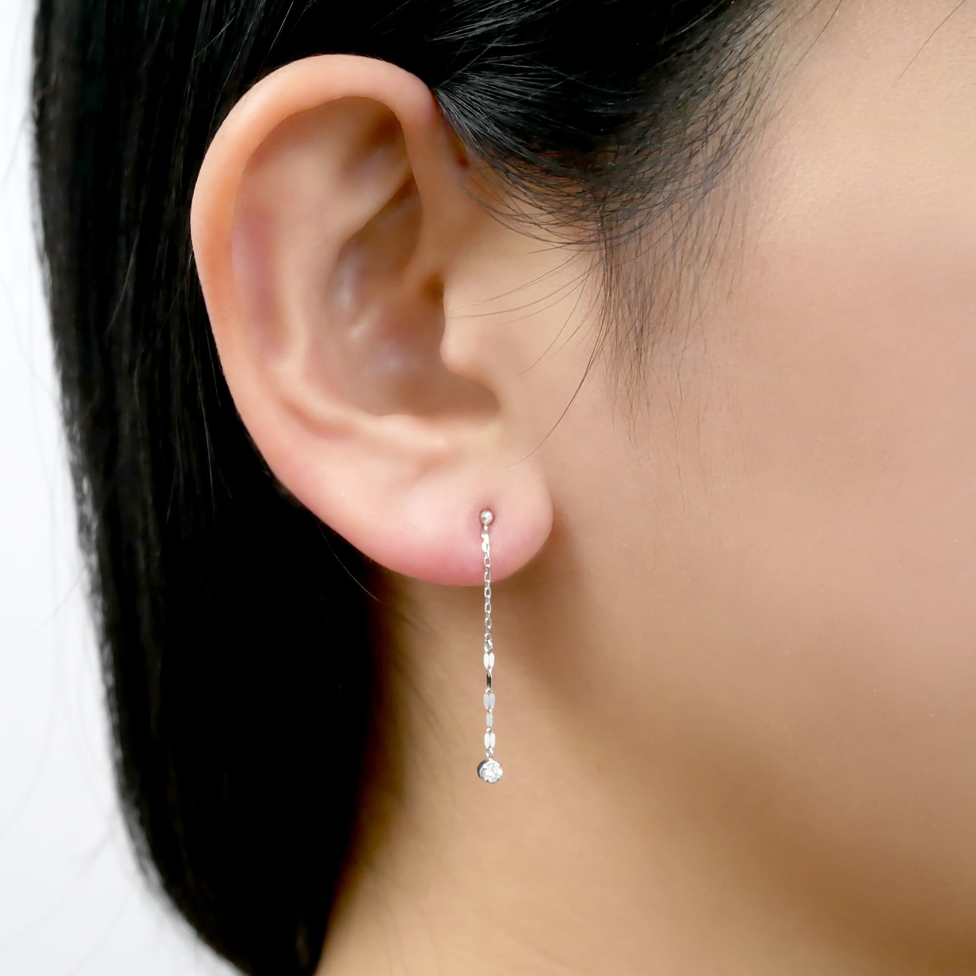きらきらと表情を変えて光る2種類のチェーンの先には、瑞々しいダイヤモンドが。