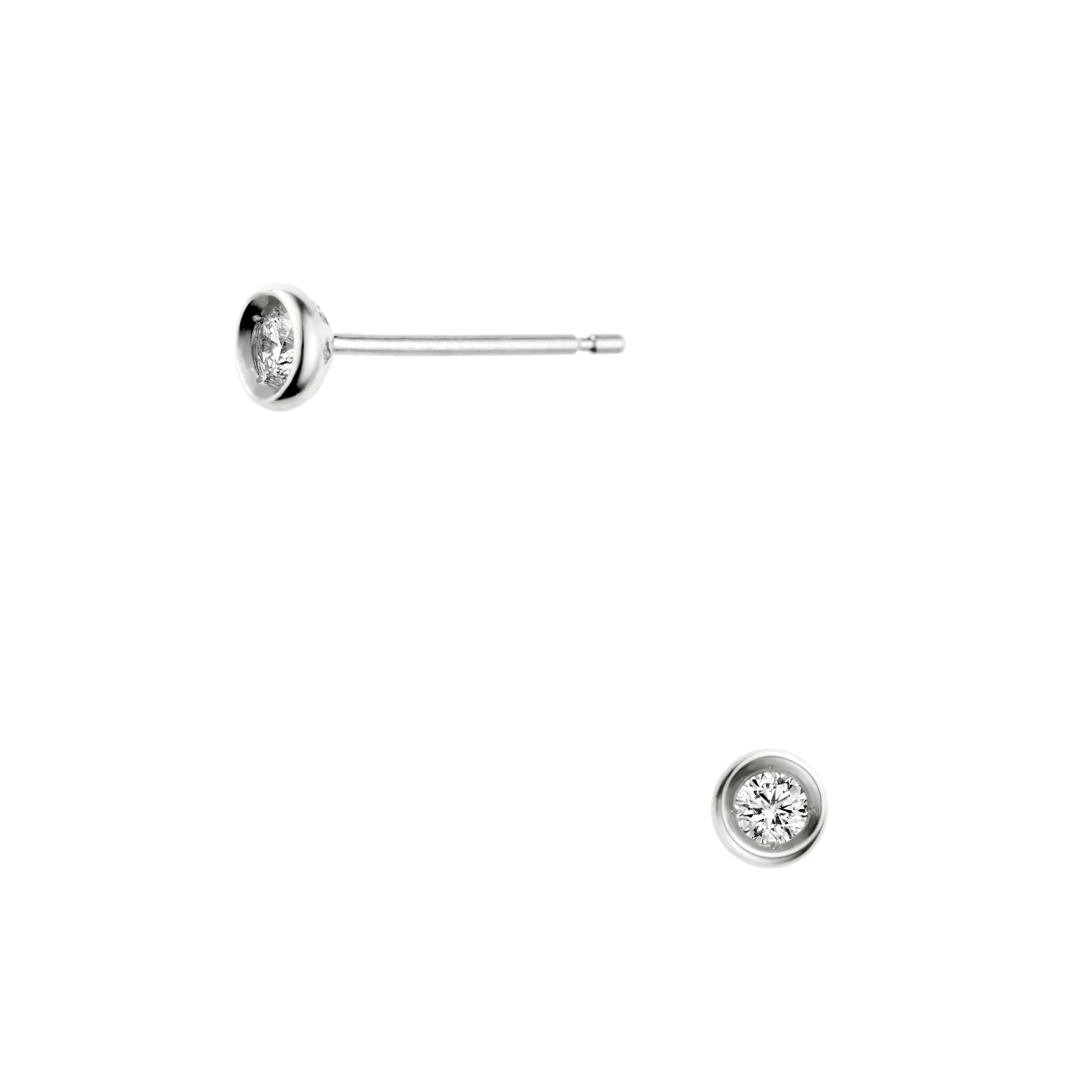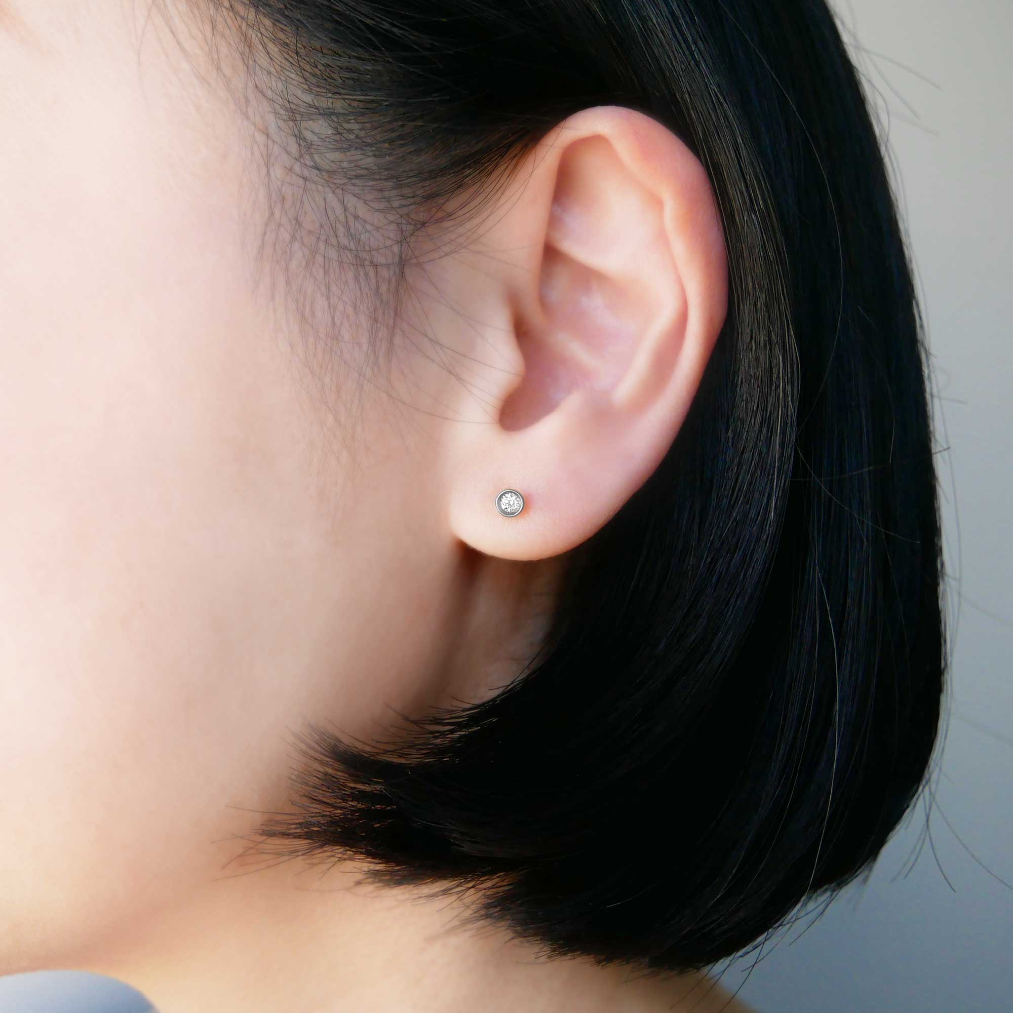 プラチナのラインでなめらかに縁取られた一粒ダイヤモンドピアス。