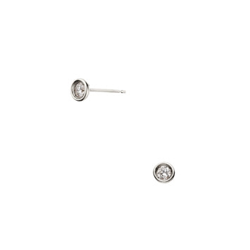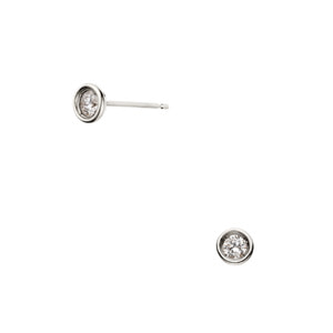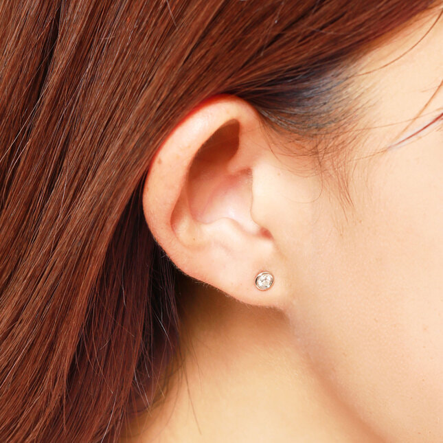 プラチナのラインでなめらかに縁取られた一粒ダイヤモンドピアス。