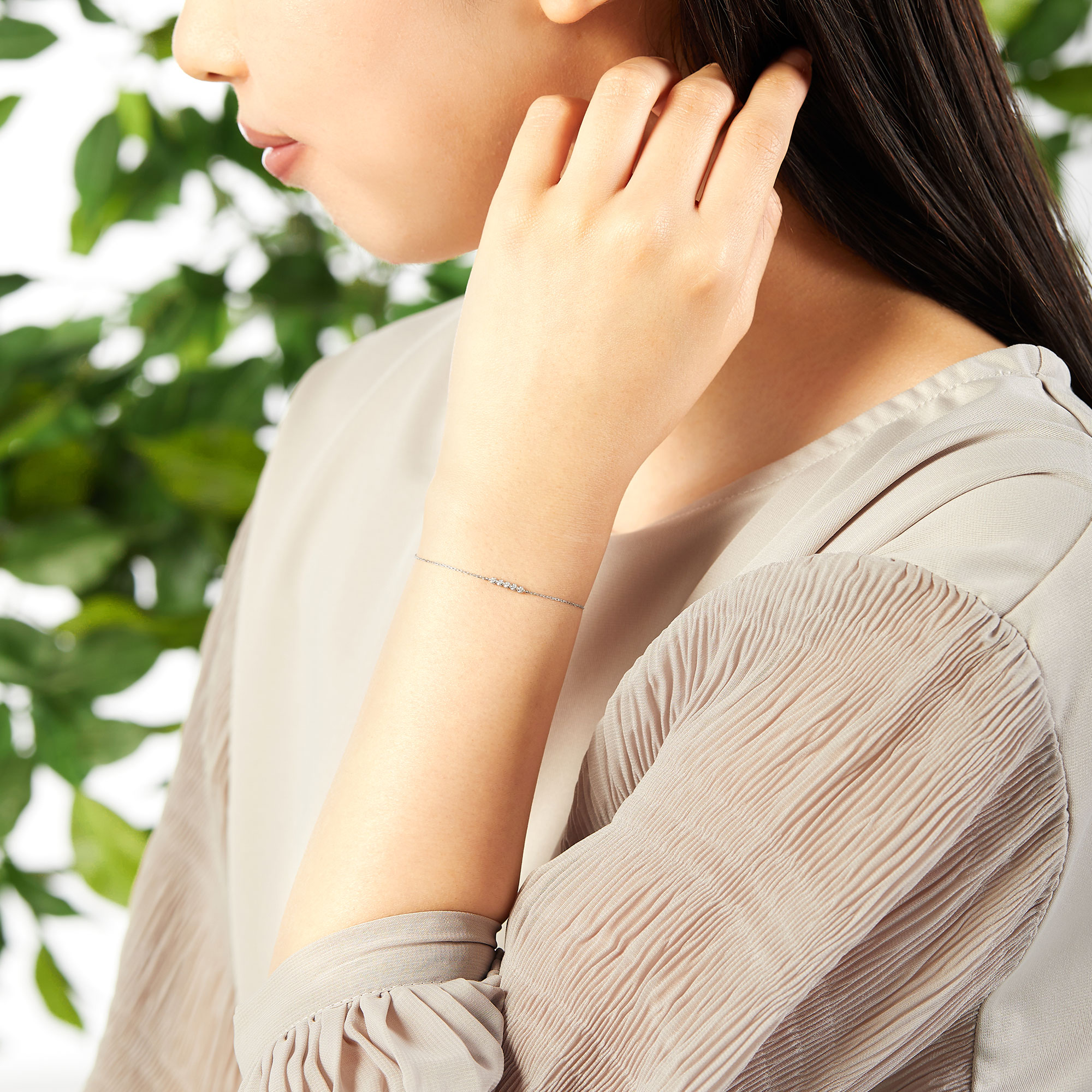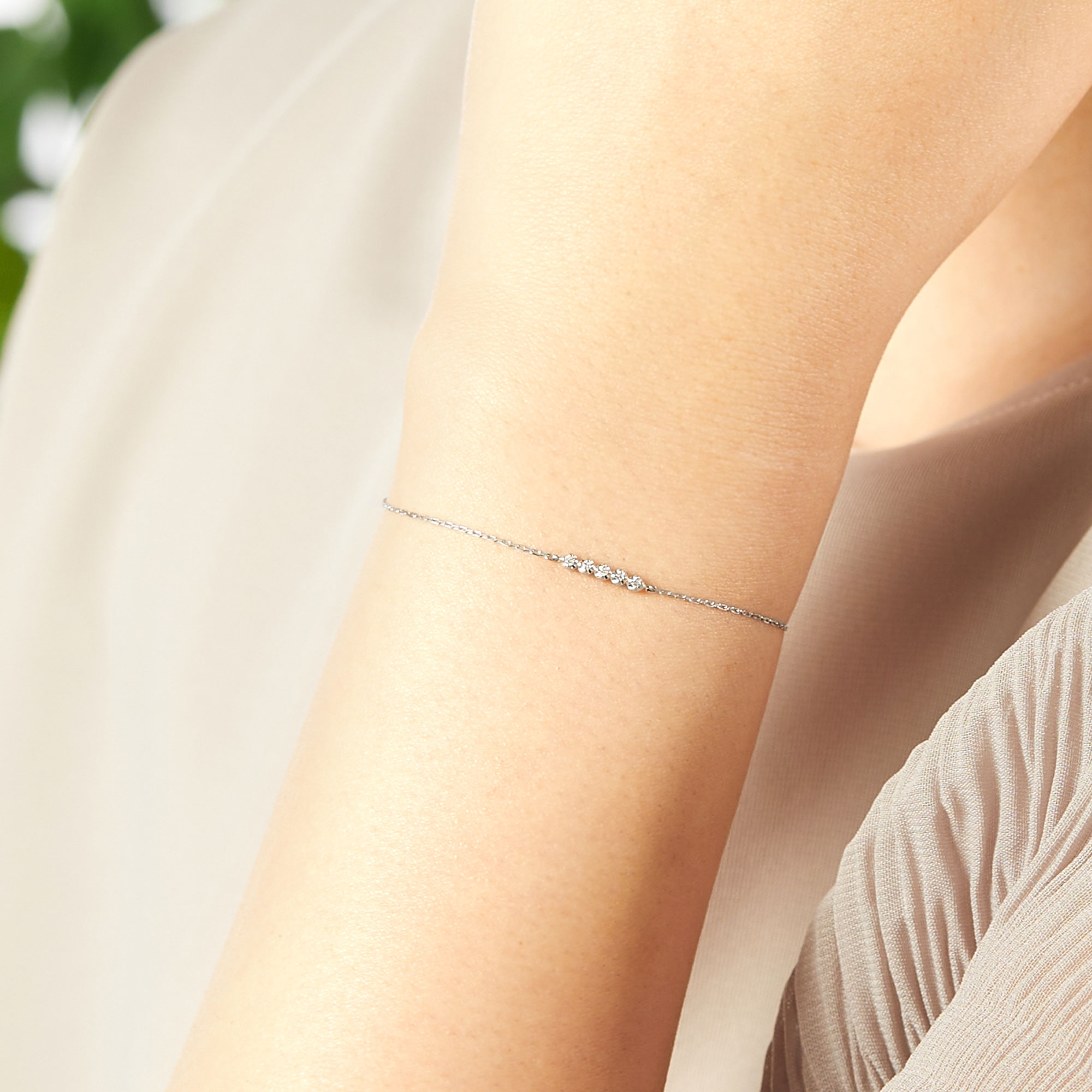 繊細なブレスレットは手元を女性らしく見せてくれそう。