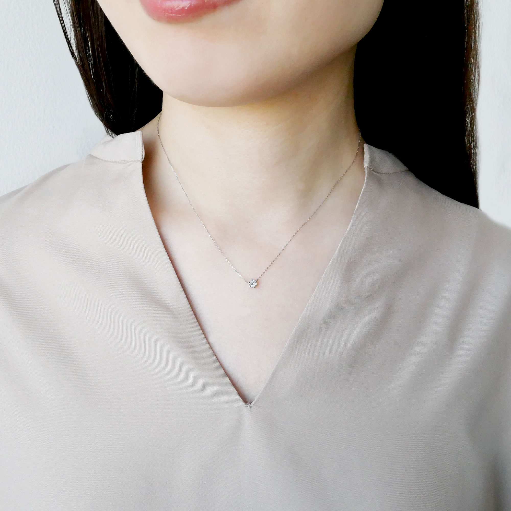 大人っぽさをプラスしてくれるプラチナの華奢なチェーンは、1粒ダイヤを美しく胸元に浮かび上がらせ輝きをより一層引き立ててくれます。