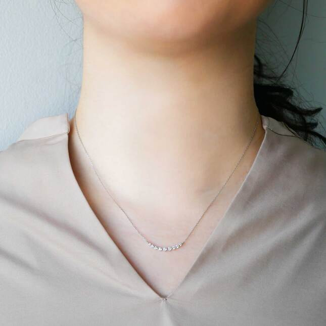 ダイヤモンドで笑顔を思わせるカーブを描いたネックレス。