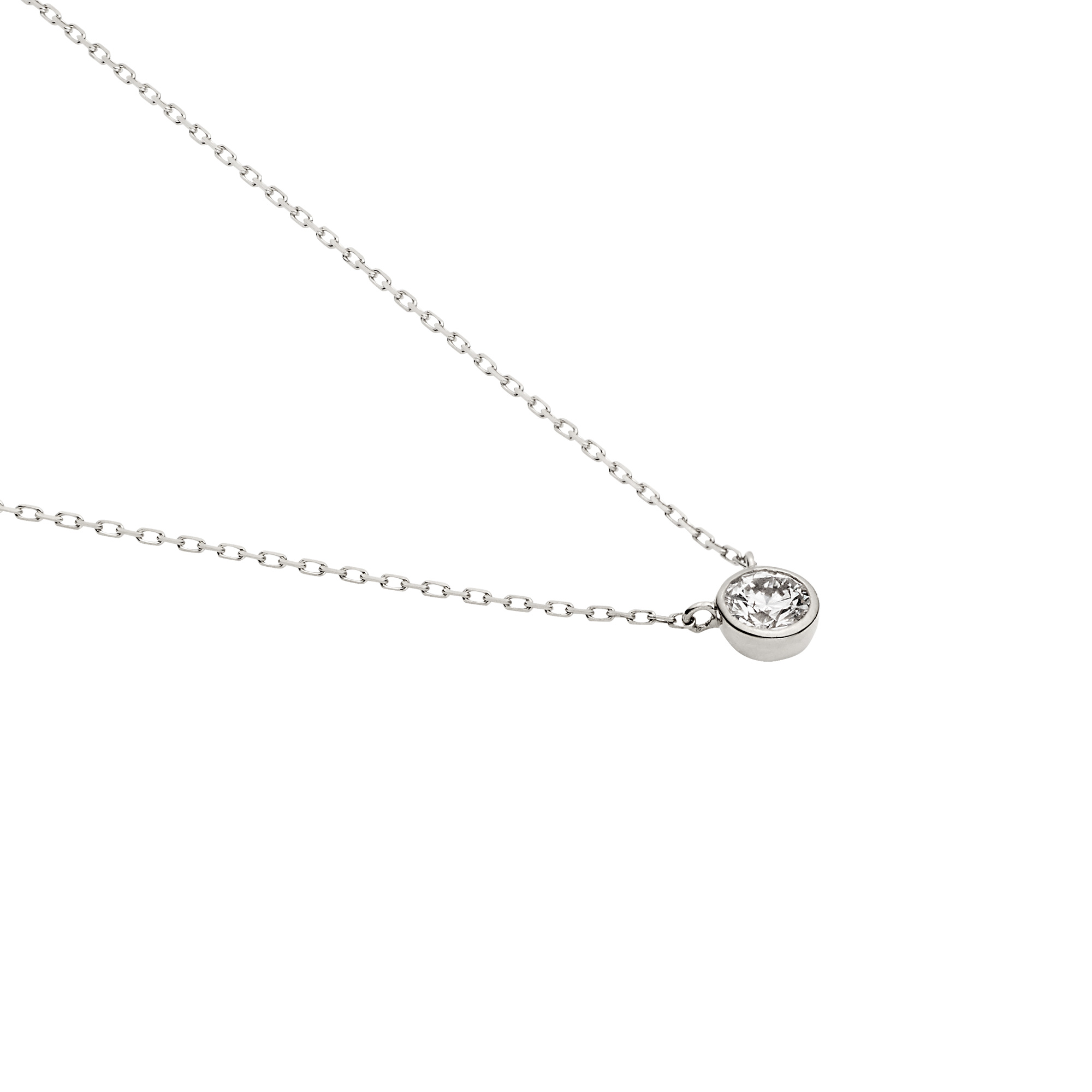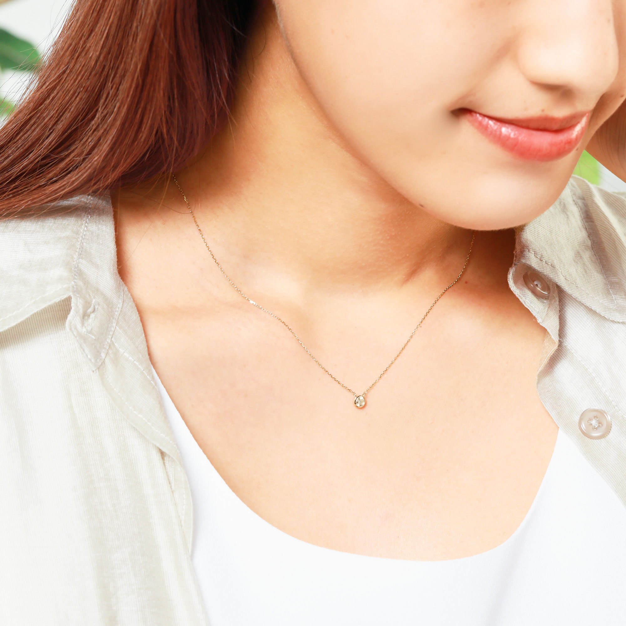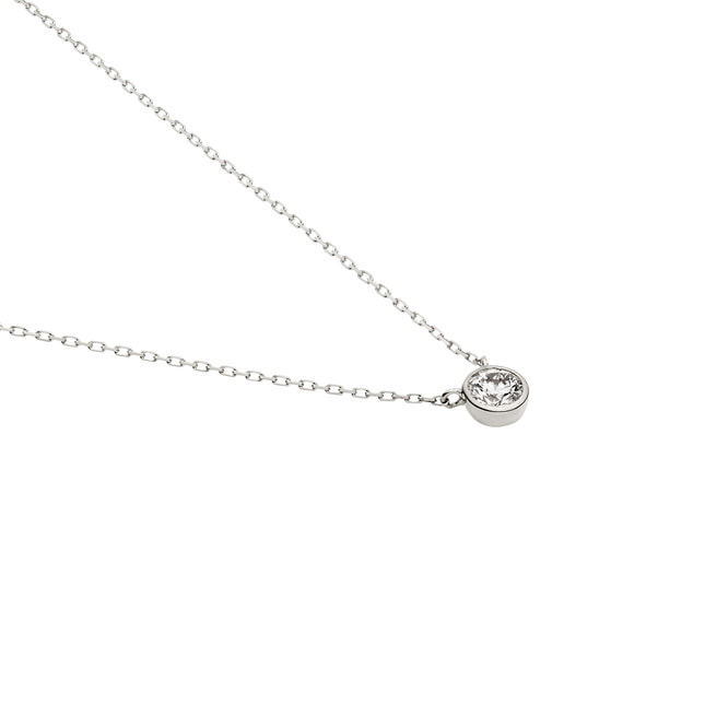 プラチナのラインでなめらかに縁取られた一粒ダイヤモンドネックレス。