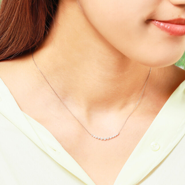 ダイヤモンドで笑顔を思わせるカーブを描いたネックレス。