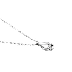 柔らかな曲線を描いたプラチナの白い光沢と、輝くダイヤモンドのコントラストが胸元を上品に飾ってくれます。