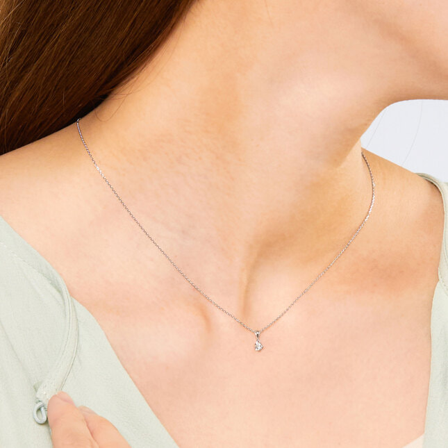 地金を存分に感じられるバチカンで下げた石枠は、軽やかに揺れてダイヤモンドが一層輝く仕様に。