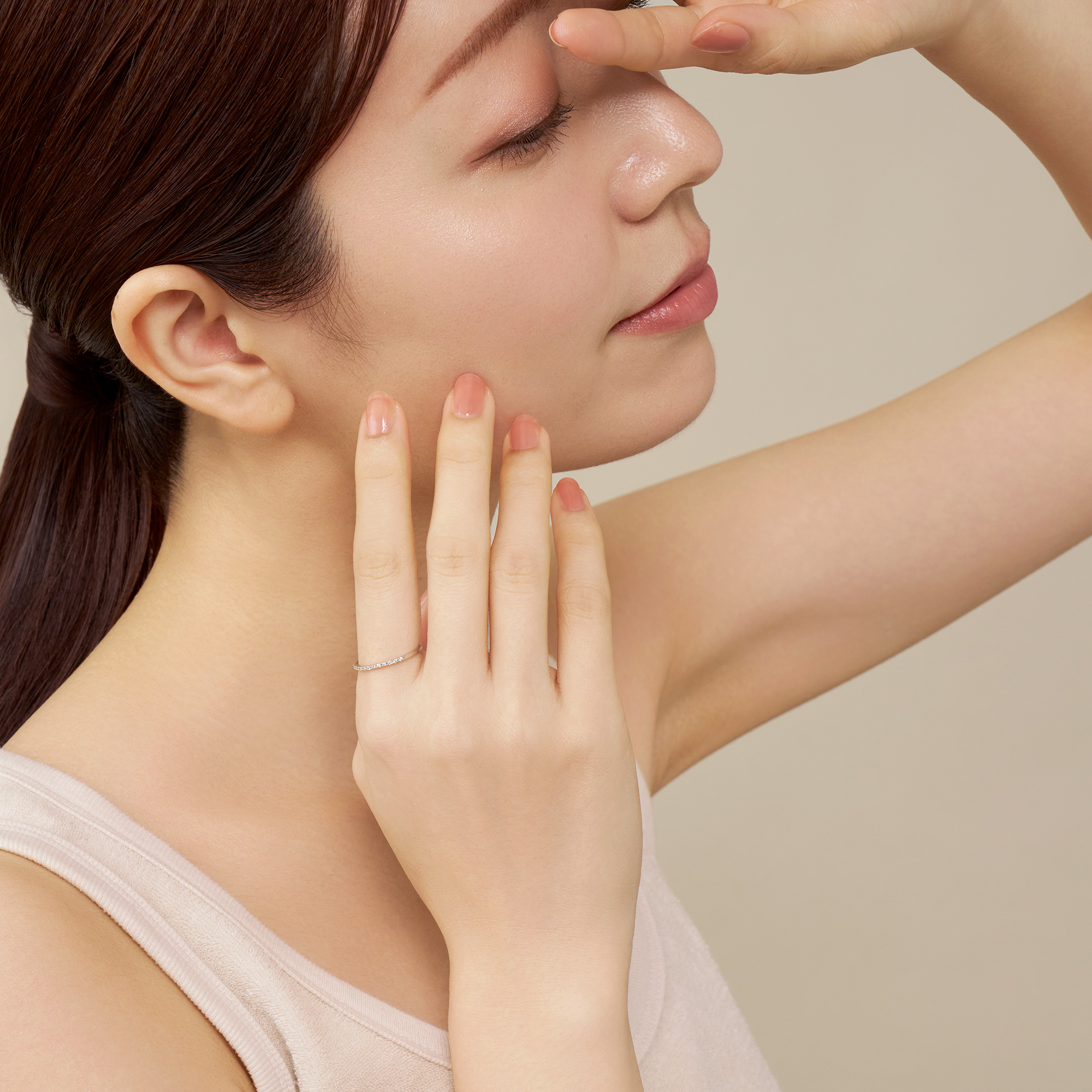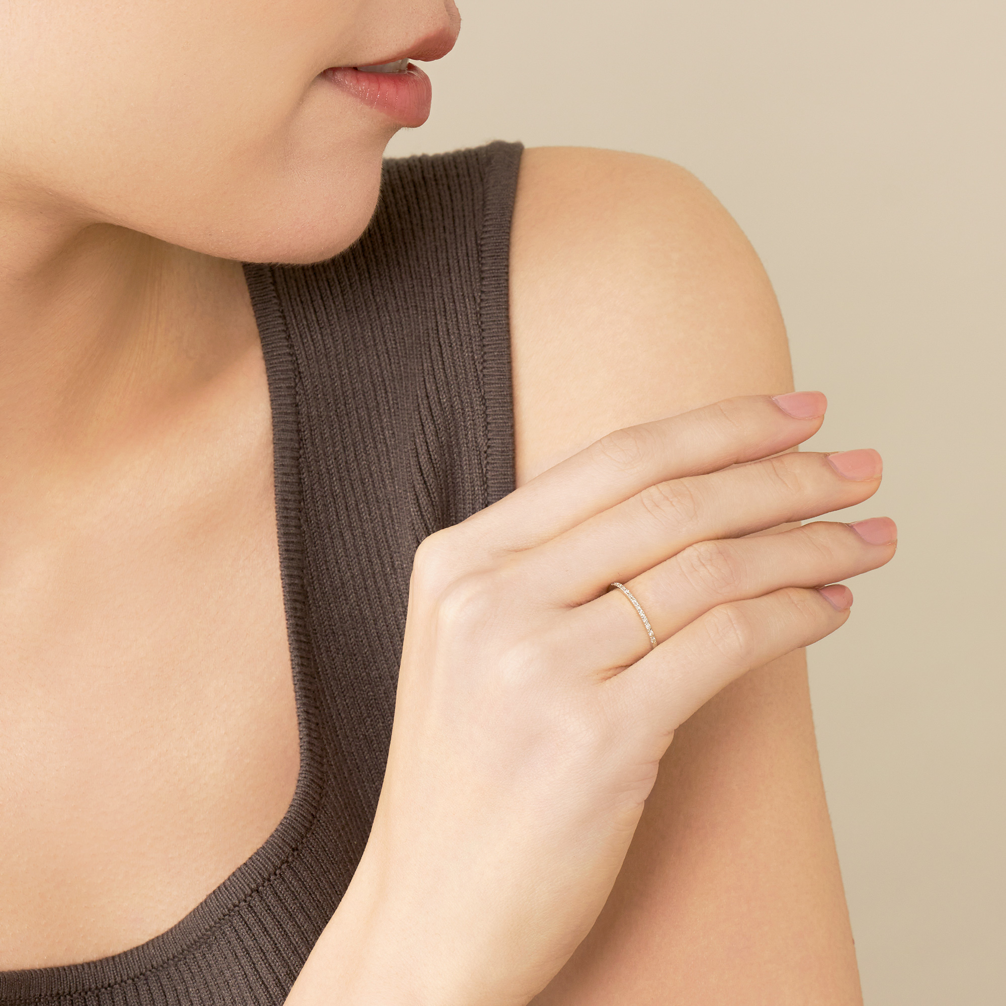 シンプルな一本使いはもちろん、お手持ちのリングと重ね着けすれば輝きが増して、より華やかな手元に見せてくれます。