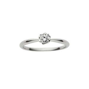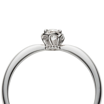 正面から見るとふんわり華やかな花のように見える石座が、大粒のダイヤモンドを優しく包み込んでいます。